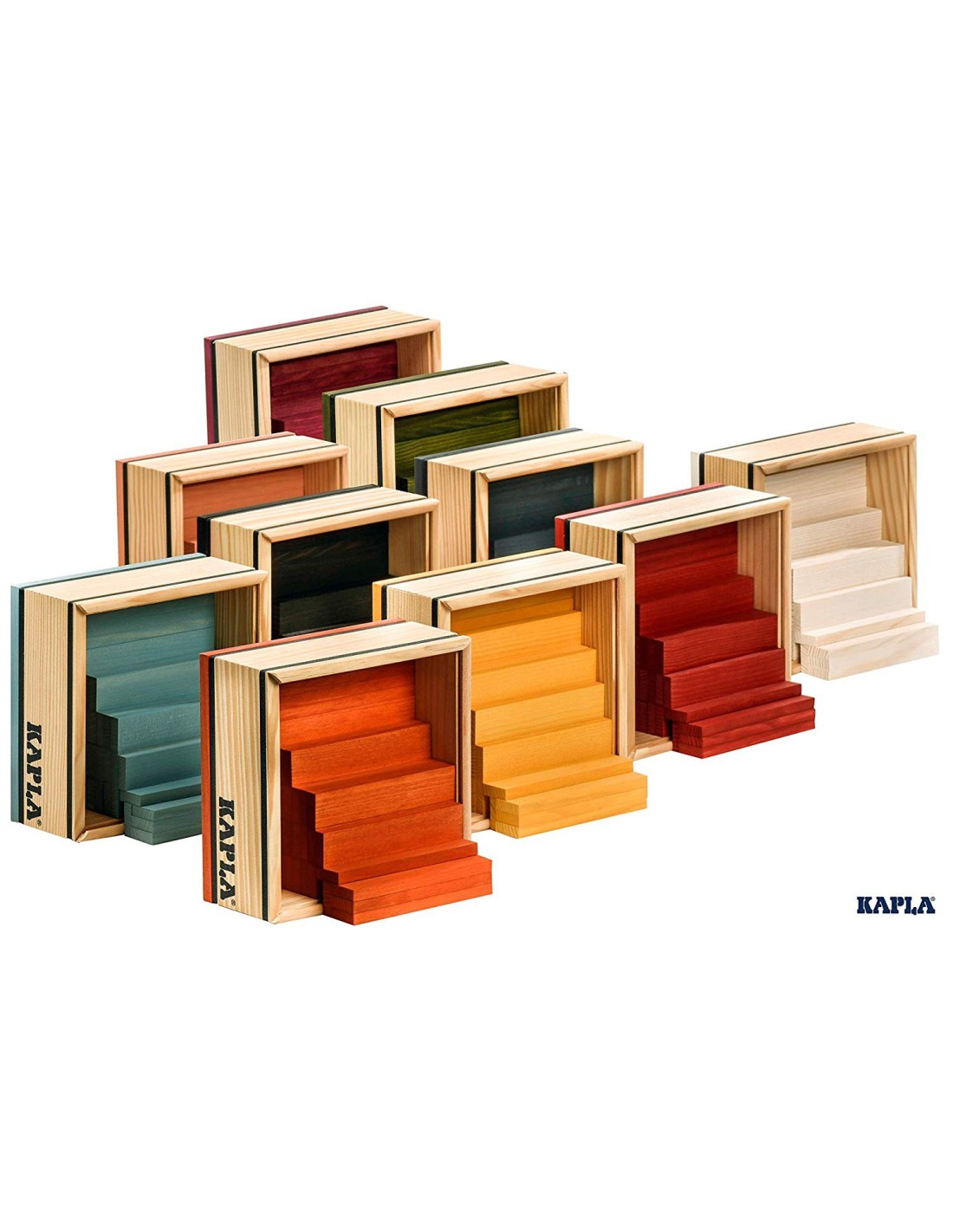 Kapla es un juguete de construcción con el cual los más pequeños ya pueden hacer sus primeras construcciones. La caja con 40 placas Kapla de color naranja le dan un toque más de diseño y especial a las creaciones con las maderitas. Las plaquítas de madera Kapla en naranja son muy versátiles y util para hacer construcciones orgánicas o de animales.