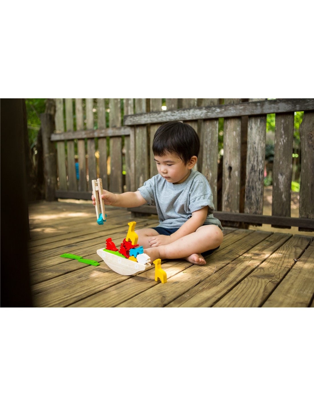 Lanza los dados para ver qué color obtienes, luego elige un animal que tenga el mismo color que sacaste. El jugador que puede equilibrar los animales en el barco usando las pinzas sin hacer que se caiga es el ganador. El conjunto consiste en un barco, 6 pares de animales, un dado y unas pinzas. De 1 a 4 jugadores. Ayuda a desarrollar habilidades motoras finas.