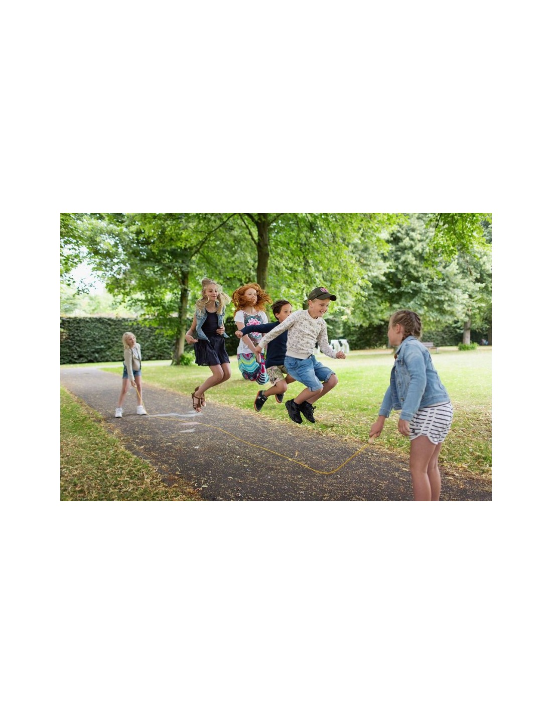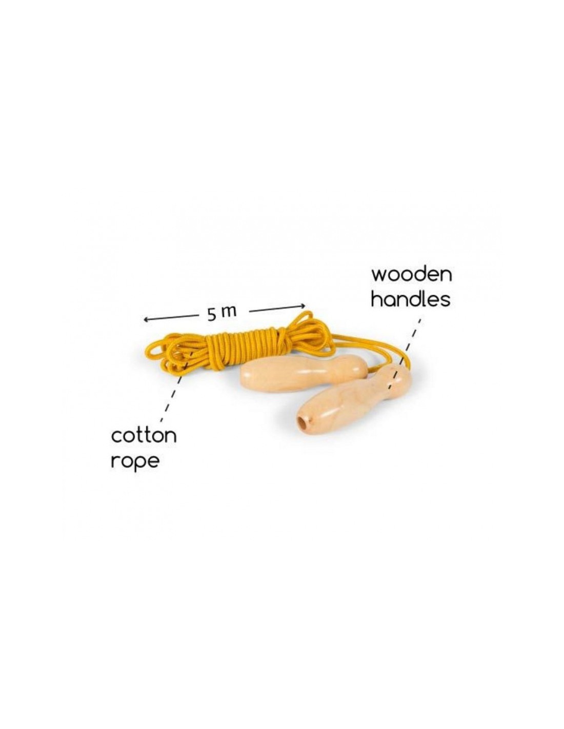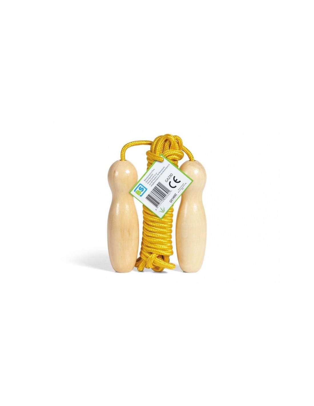 Cuerda para saltar extra grande para que todos puedan saltar juntos. La comba está hecha de madera y algodón y tiene una longitud de 500 centímetros.