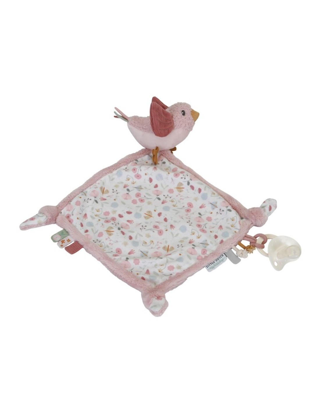Suave y dulce. Este suave doudou tiene unas características perfectas para un recién nacido: un pajarito para abrazar, nudos fáciles de agarrar y etiquetas divertidas para explorar. Calma y ayuda a conciliar el sueño. Además, puedes conectar un chupete o anillo de dentición al lazo de la tela.