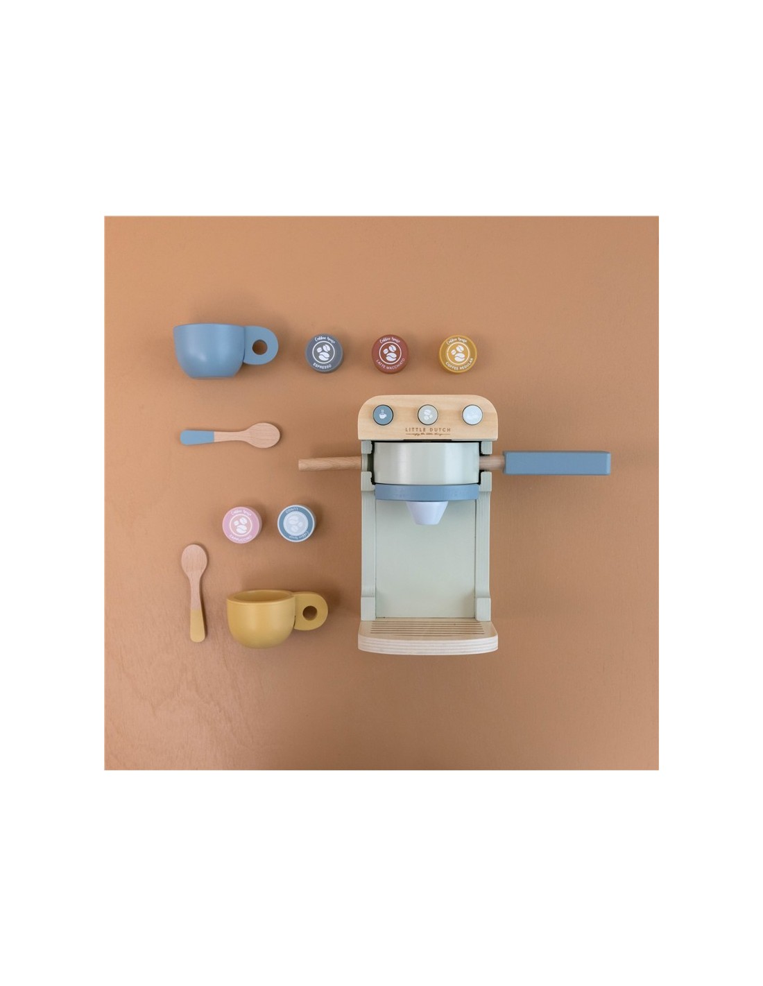 ¿Ya es hora para tomar café? Elabora, sirve y juega todo el día con esta adorable cafetera. Lleva a tu mamá o papá una taza de café reciente por la mañana o invita a tu muñeca favorita a tu pequeño corner de café. ¿Prefieres un café largo, capuccino, con leche, solo o espresso?