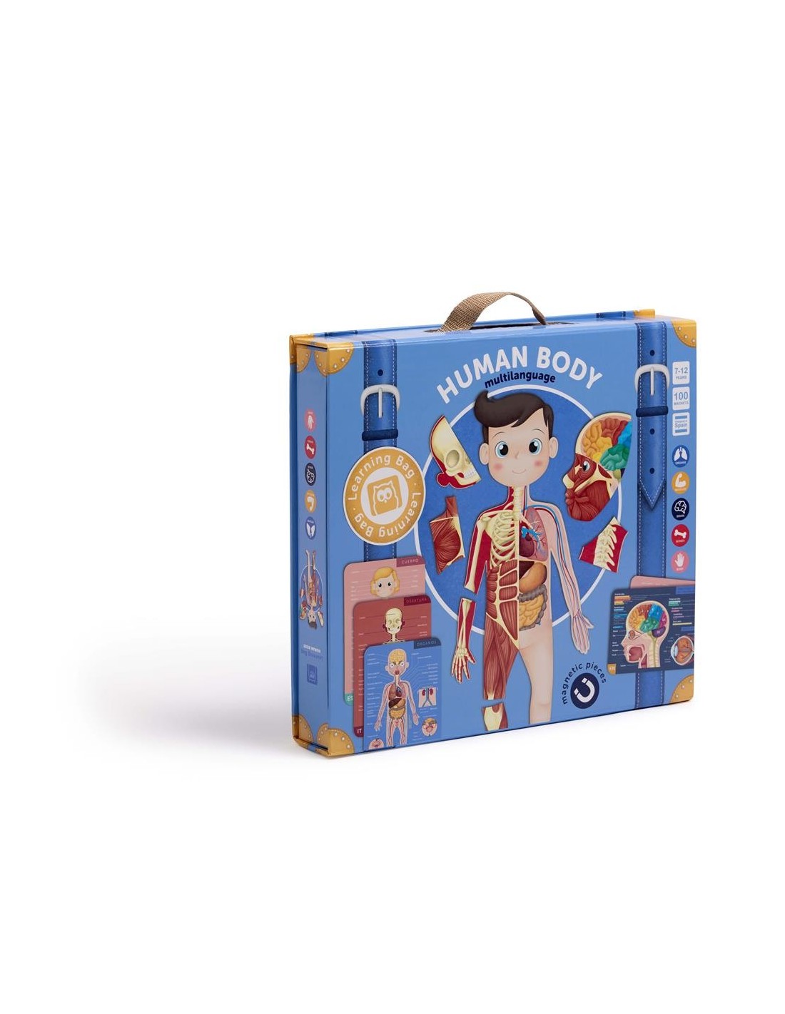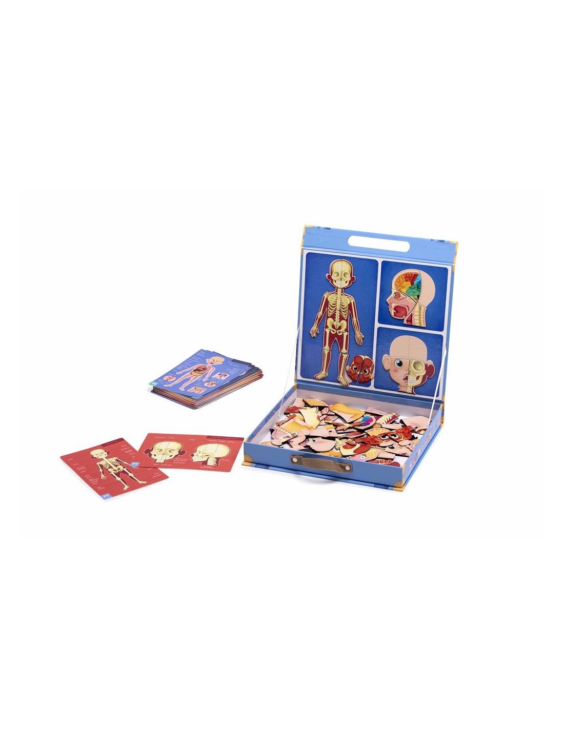 Este maletín educativo contiene 100 piezas magnéticas de diferentes partes del cuerpo humano. Está especialmente diseñado para que los peques aprendan las partes del cuerpo siguiendo sus múltiples capas o niveles. Gracias a las tarjetas didácticas podrán colocar las piezas magnéticas en su lugar correspondiente.