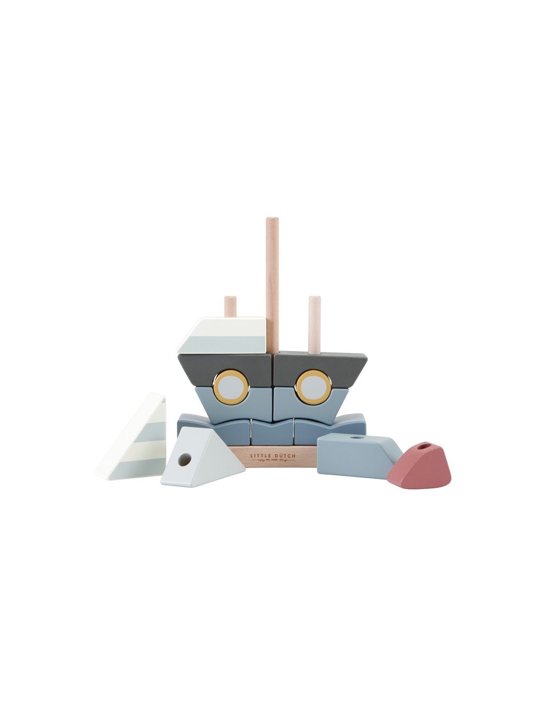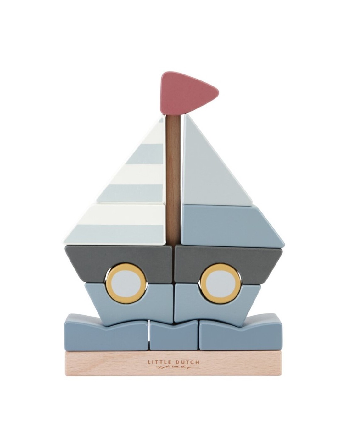 ¡Construyamos juntos un velero! Este encajable de 14 bloques es un verdadero desafío. Coloca las piezas en el soporte una a una e intenta crear un velero. O haz tu propia creación. ¡No olvides levantar la bandera cuando hayas terminado! El encajable para veleros apoya la coordinación mano-ojo, pero también es un buen elemento decorativo para la guardería.