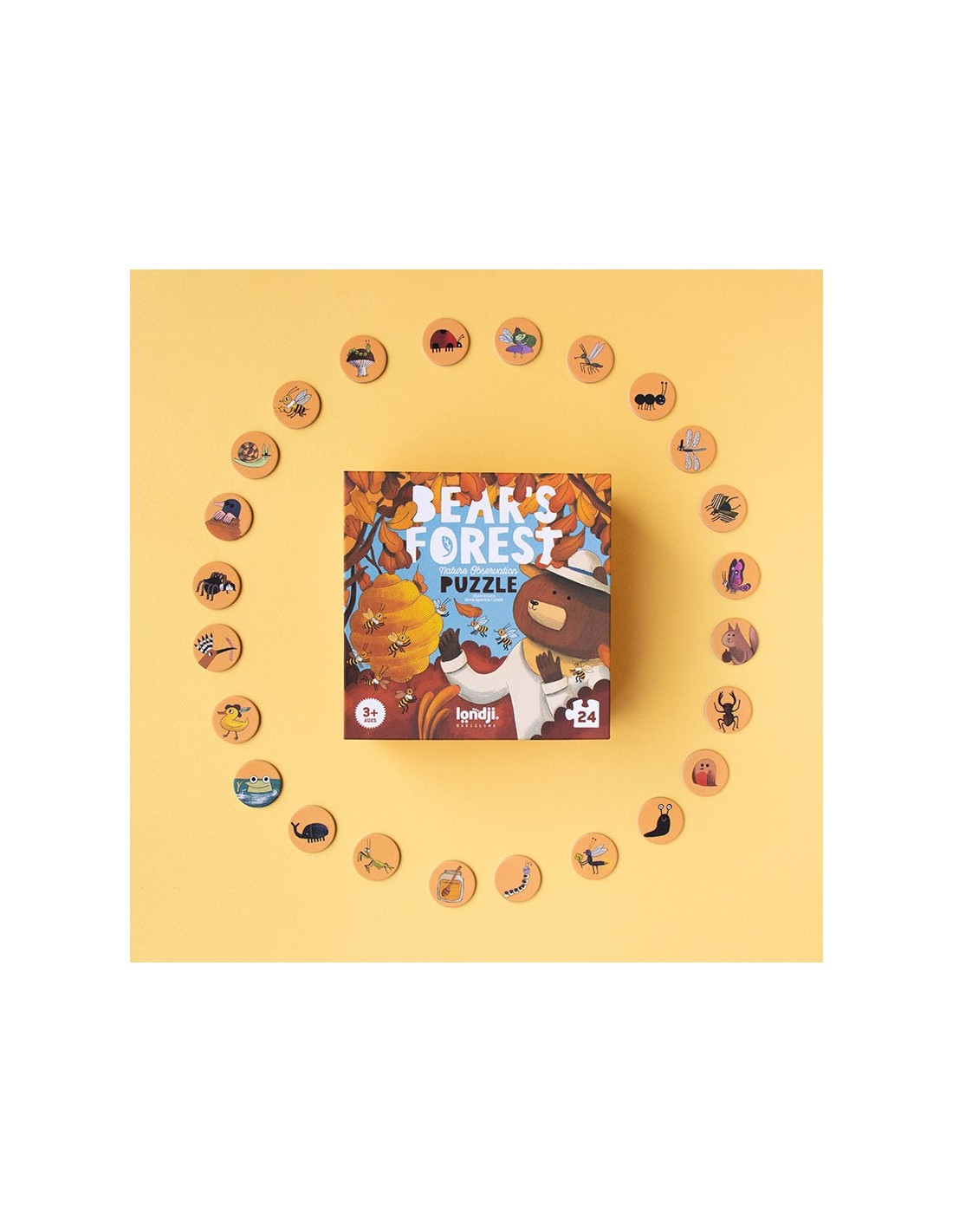 Nuestros amigos los osos están de lo más atareados disfrutando de la miel de las abejas. ¡Observa con atención y descubre todos los insectos y los bichos que les hacen compañía!