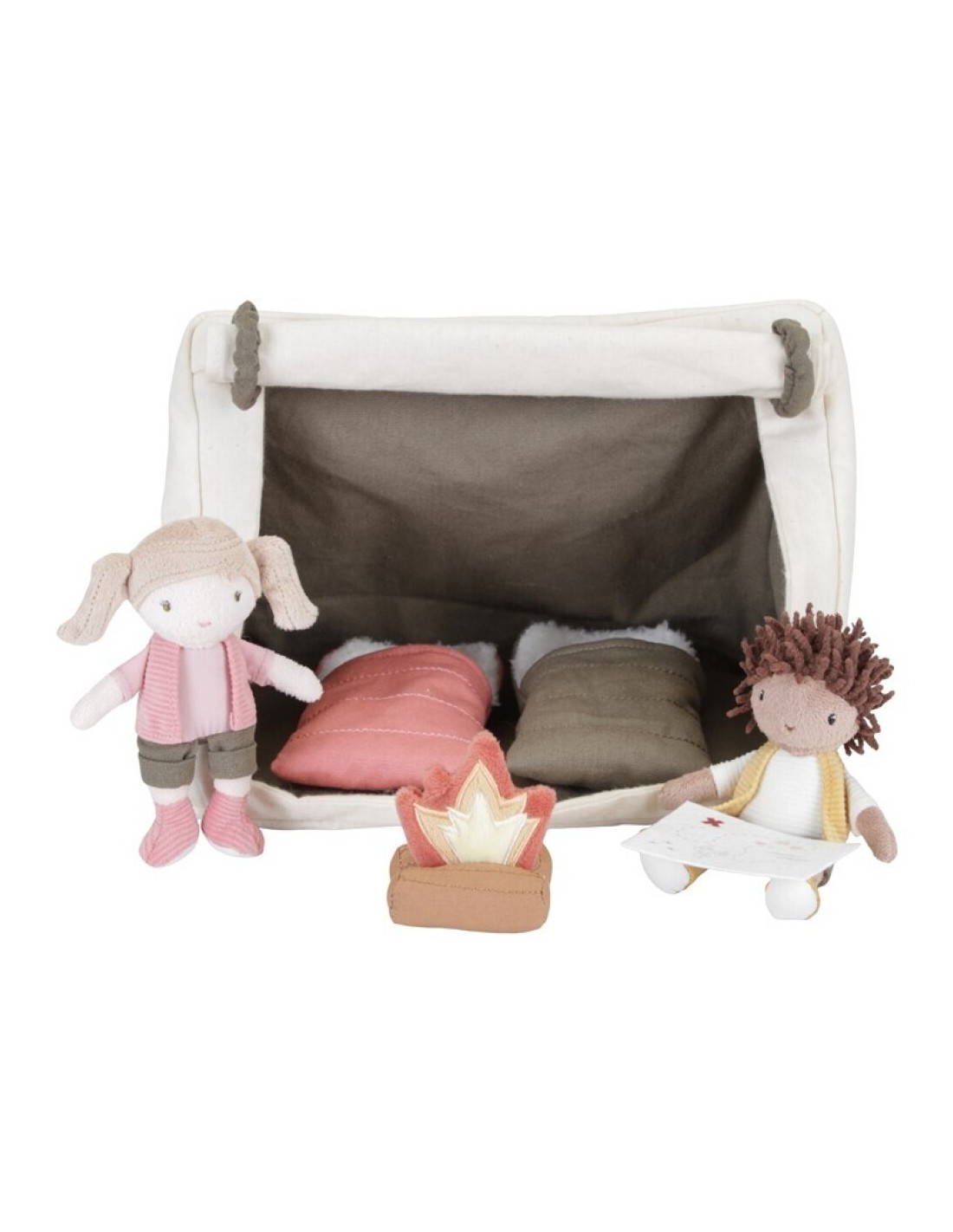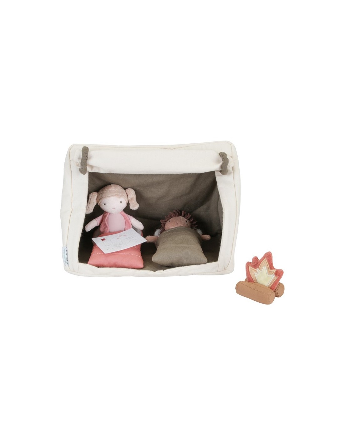 Este juego de muñecas para acampar fomentará muchas horas de juego de simulación. La tienda se puede abrir y cerrar y caben ambas muñecas en sus sacos de dormir. ¡El juego animará a tu peque a imaginar las aventuras más emocionantes de acampar en el bosque, en la playa o en la luna! ¡Feliz campamento!
