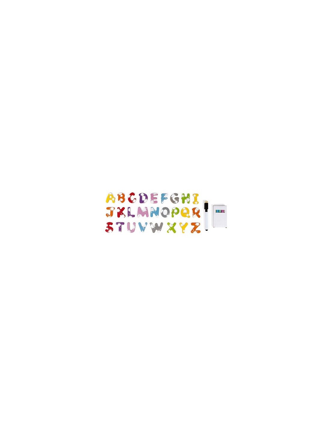 - Incluye: las 26 letras del alfabeto magnéticas, 5 tizas de colores y un rotulador de pizarra borrable en negro.