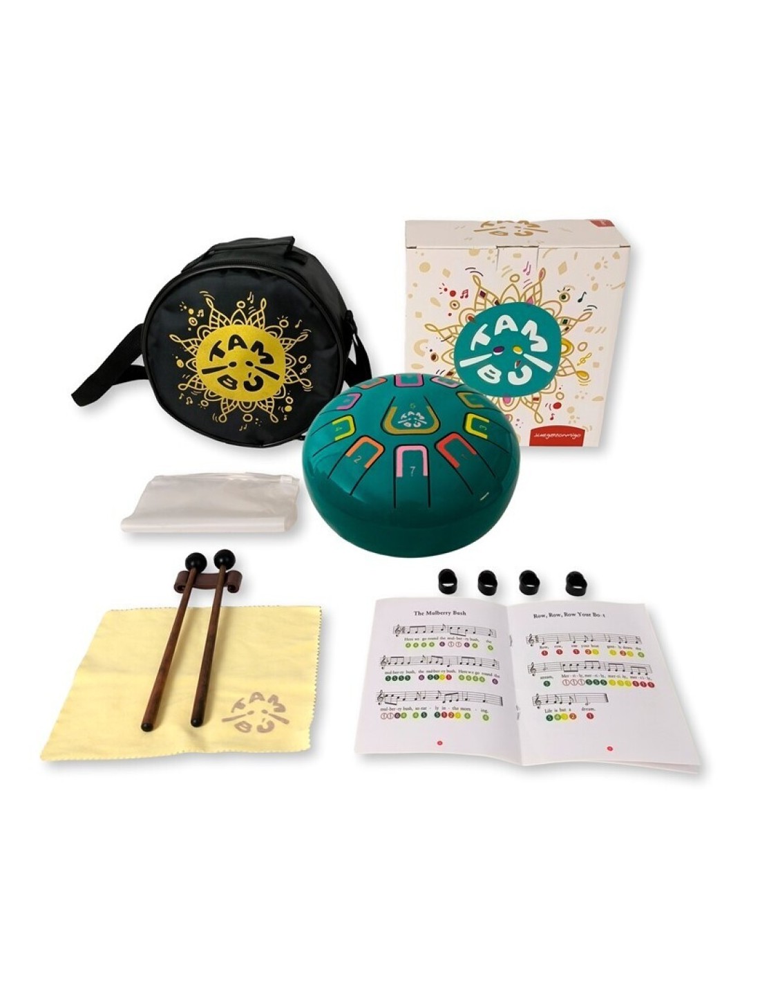 El TAMBÚ puede hacerse sonar de diferentes maneras. Viene acompañados de partituras en números y colores para aquellos que empiezan.