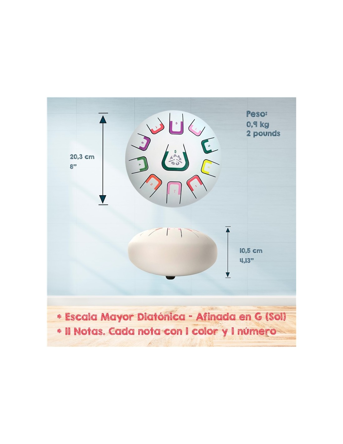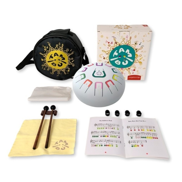 El TAMBÚ puede hacerse sonar de diferentes maneras. Viene acompañados de partituras en números y colores para aquellos que empiezan.