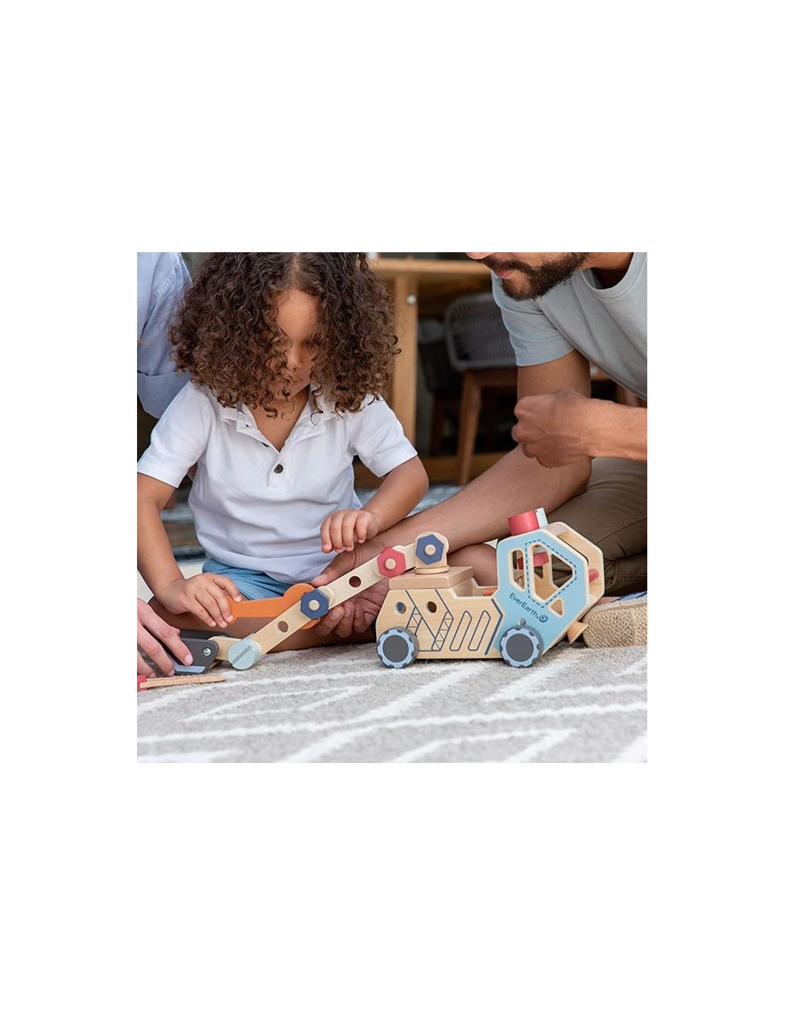 - Incluye: sierra, llave inglesa, 2 astronautas, excavadora, tornillos y tuercas.