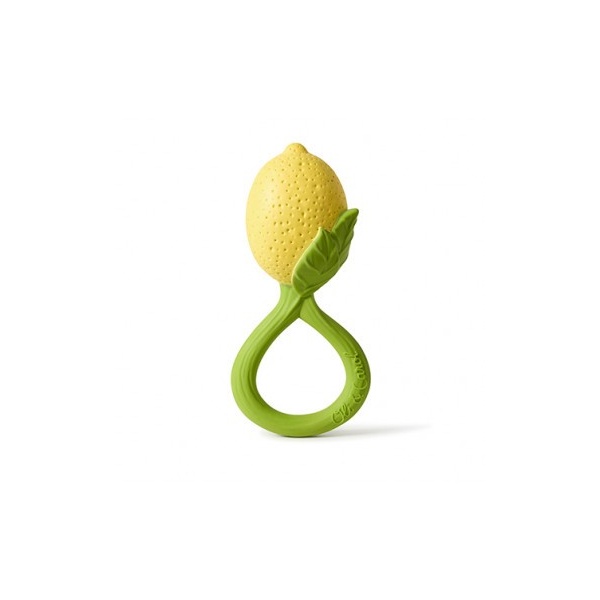 - 2 en 1, mordedor de caucho natural y juguete sonajero.