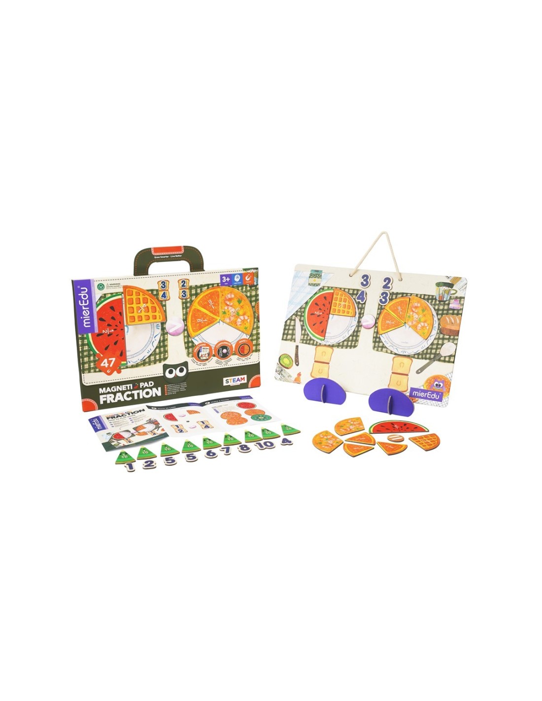 Tablero Magnético Fracciones: para que los principiantes aprendan los conceptos básicos de las fracciones, incluidos 5 tipos de cognición de fracciones, comparación de fracciones y juego «hacer 1». Las piezas de «fruta y comida» podrían ayudar a los niños a combinar la experiencia de la vida real con la comprensión del conocimiento de fracciones.