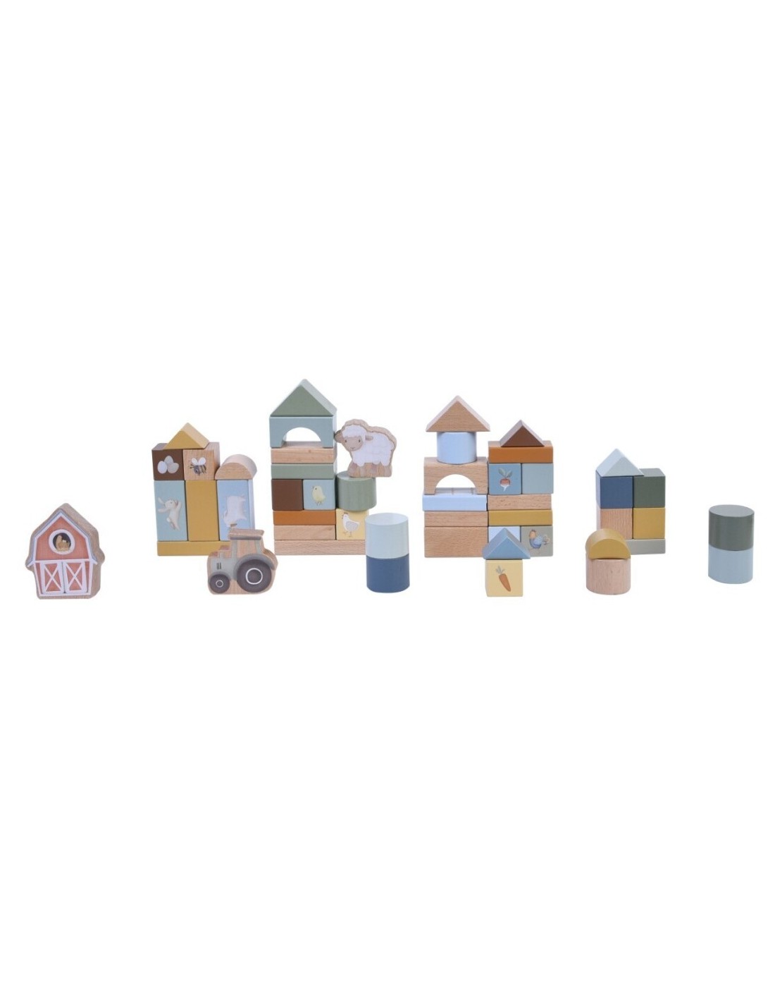 Estos bloques de madera en un cubo son indispensables. El cubo contiene no menos de 50 bloques de madera con hermosos estampados de nuestra colección Little Farm. Apila los diferentes bloques para construir la granja más linda. ¡Los bloques garantizan mucho placer de construcción y se pueden guardar fácilmente en el barril!