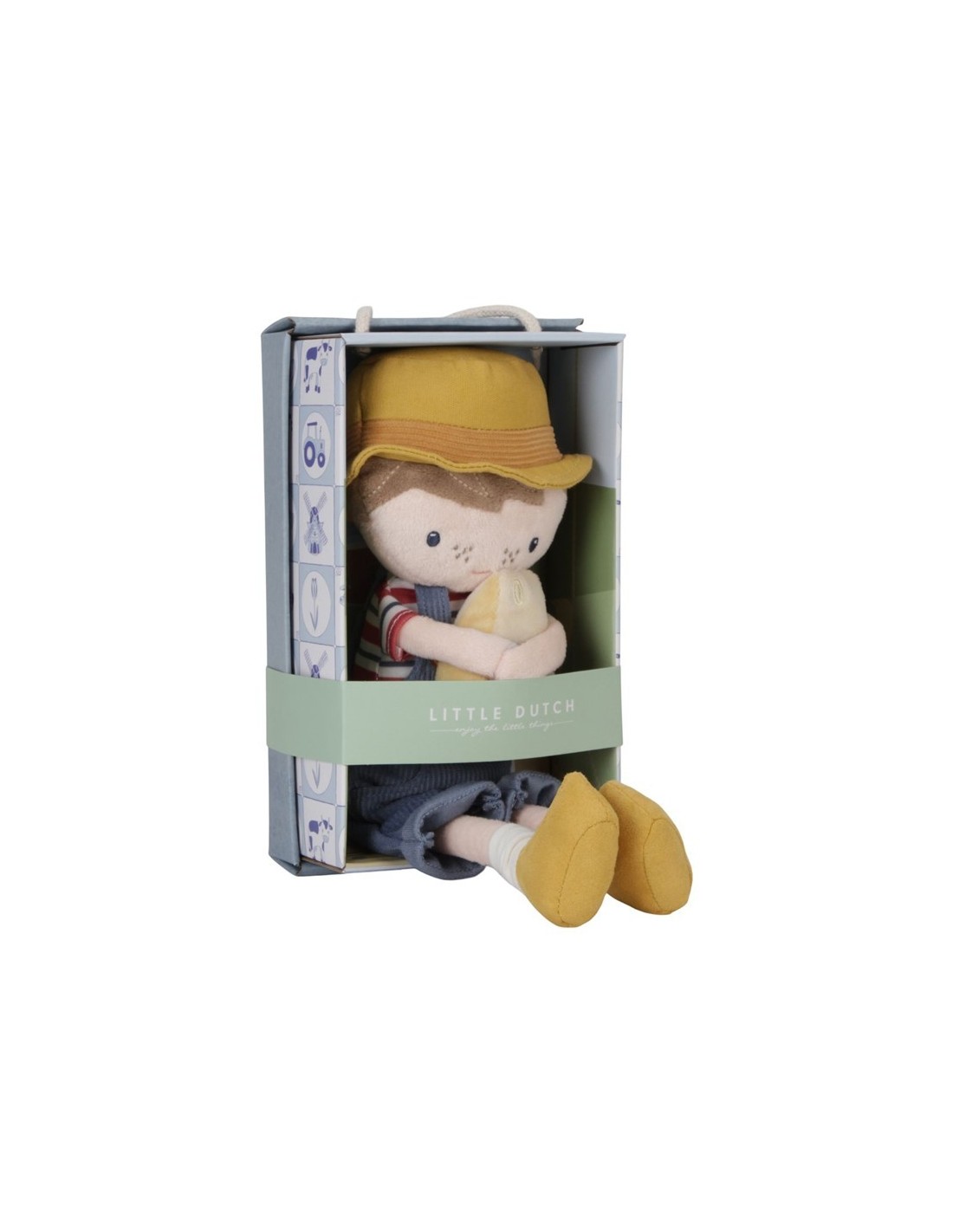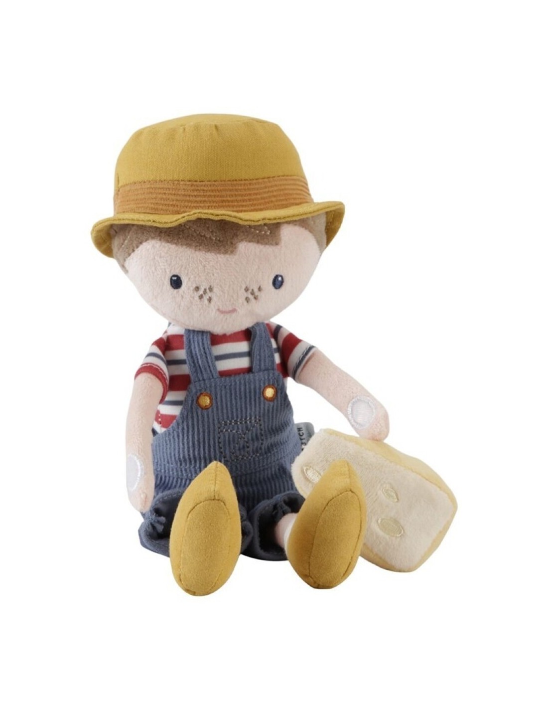 La nueva versión de muñeco blandito de Little Dutch Jim en su versión granjero de la colección Little Farm. Jim adora el queso y va a todas partes con un buen trozo, que le podrás colocar o quitar cuando quieras. Edad recomendada +12 m.