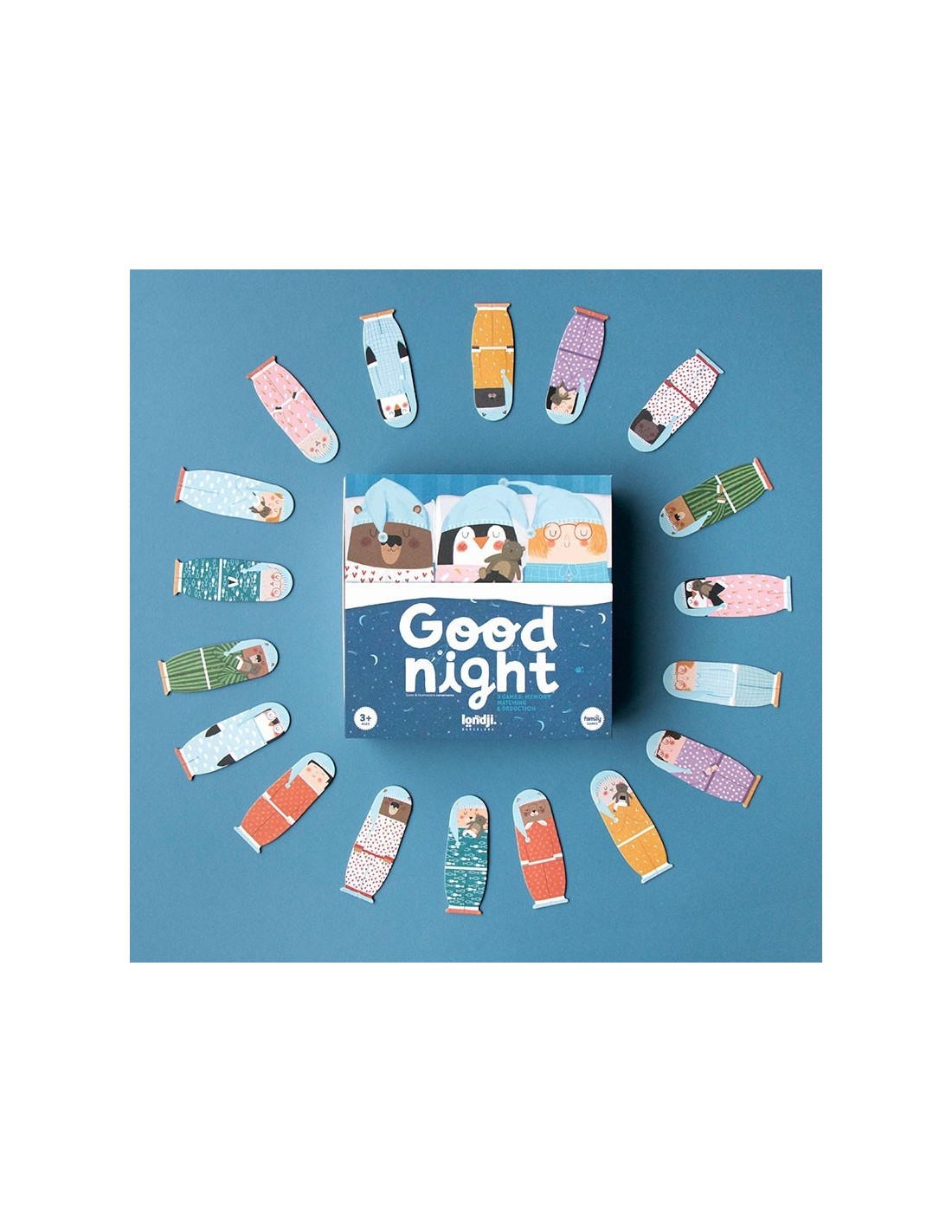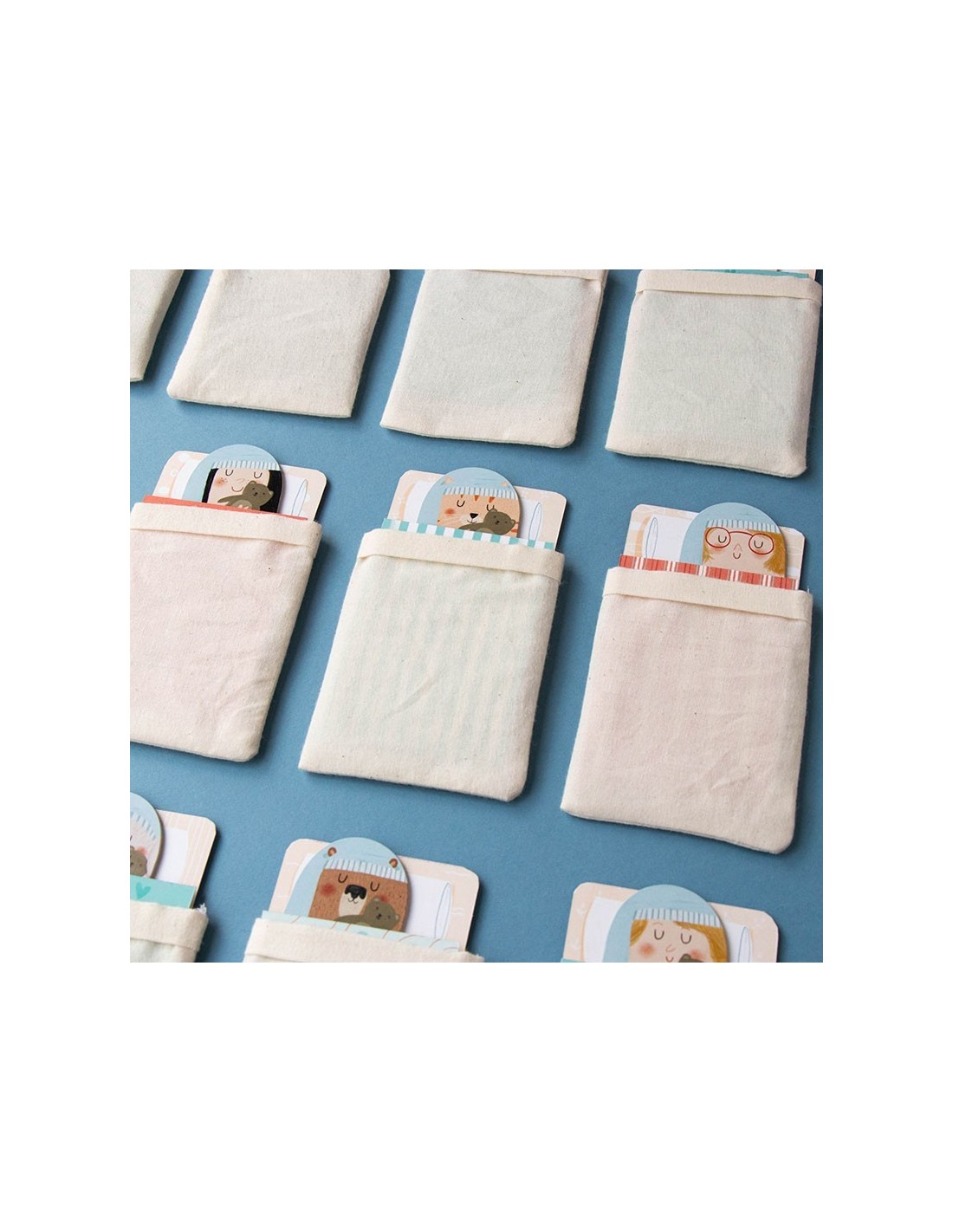 Juego de memoria: con todos los personajes dentro de sus camas, hay que encontrar a los que visten el mismo pijama.