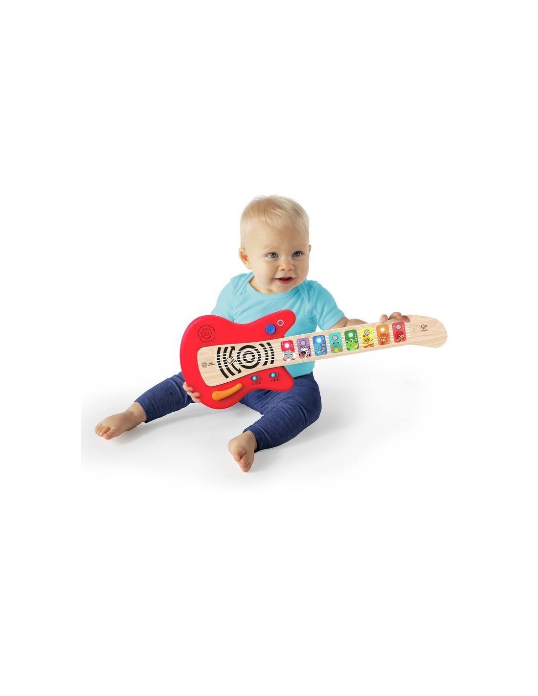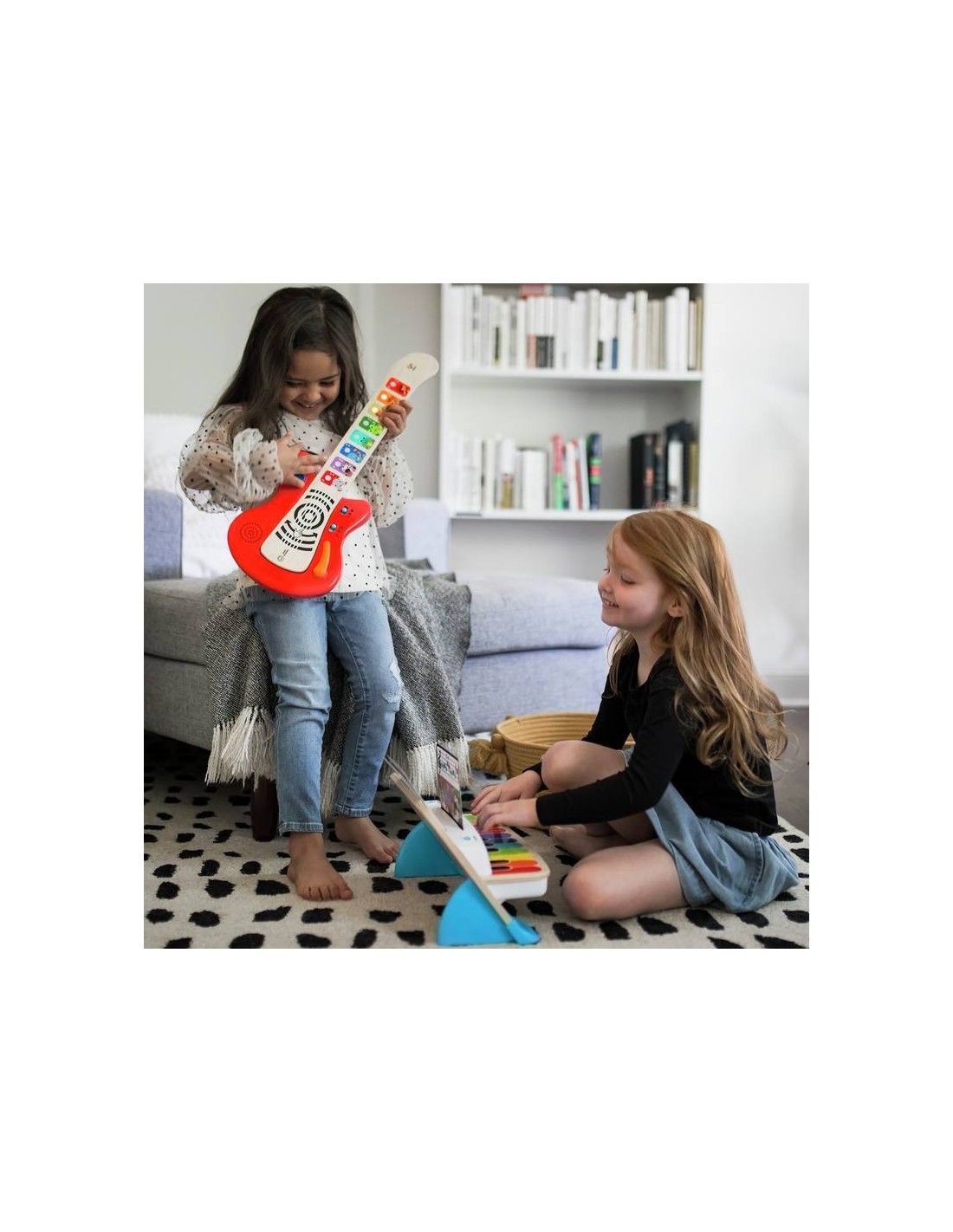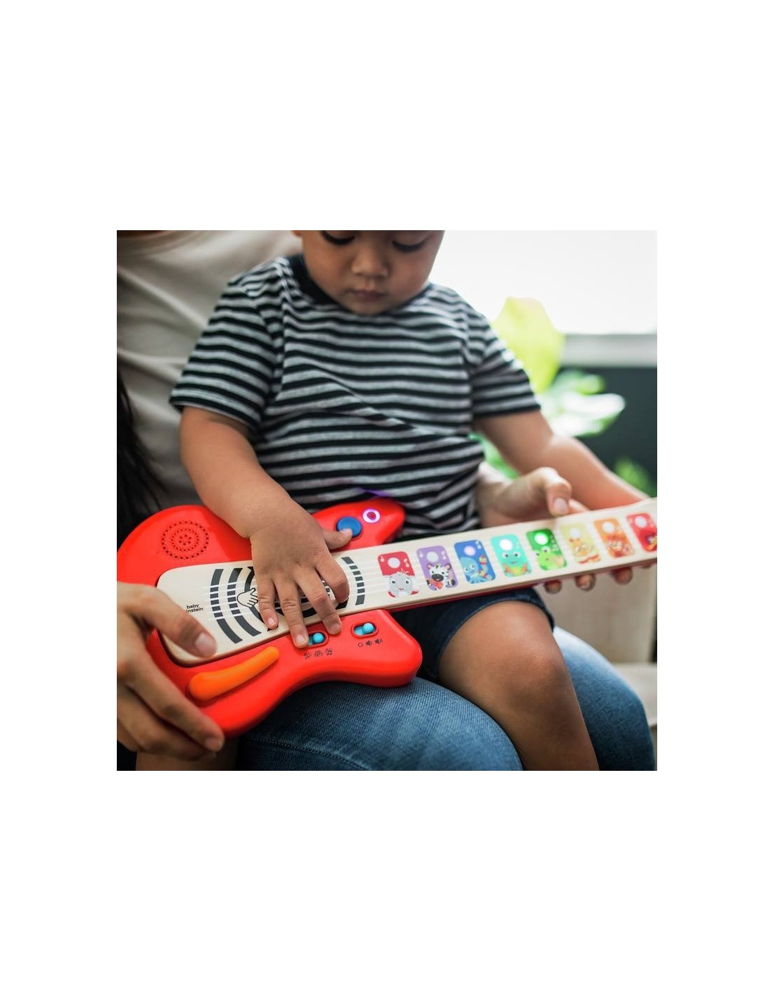 Una guitarra con 3 modos: 3 modos: juego libre: rasguea y presiona los trastes para cambiar el acorde; compositor: pulsa las teclas para crear tus propios riffs de guitarra armonizados. Creativo: crea divertidas melodías con sonidos divertidos; Teclado de madera con tecnología Magic Touch; Luces LED de colores Control de volumen para agudos y graves.