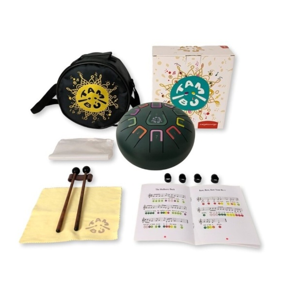 El TAMBÚ puede hacerse sonar de diferentes maneras. Viene acompañados de partituras en números y colores para aquellos que empiezan.
