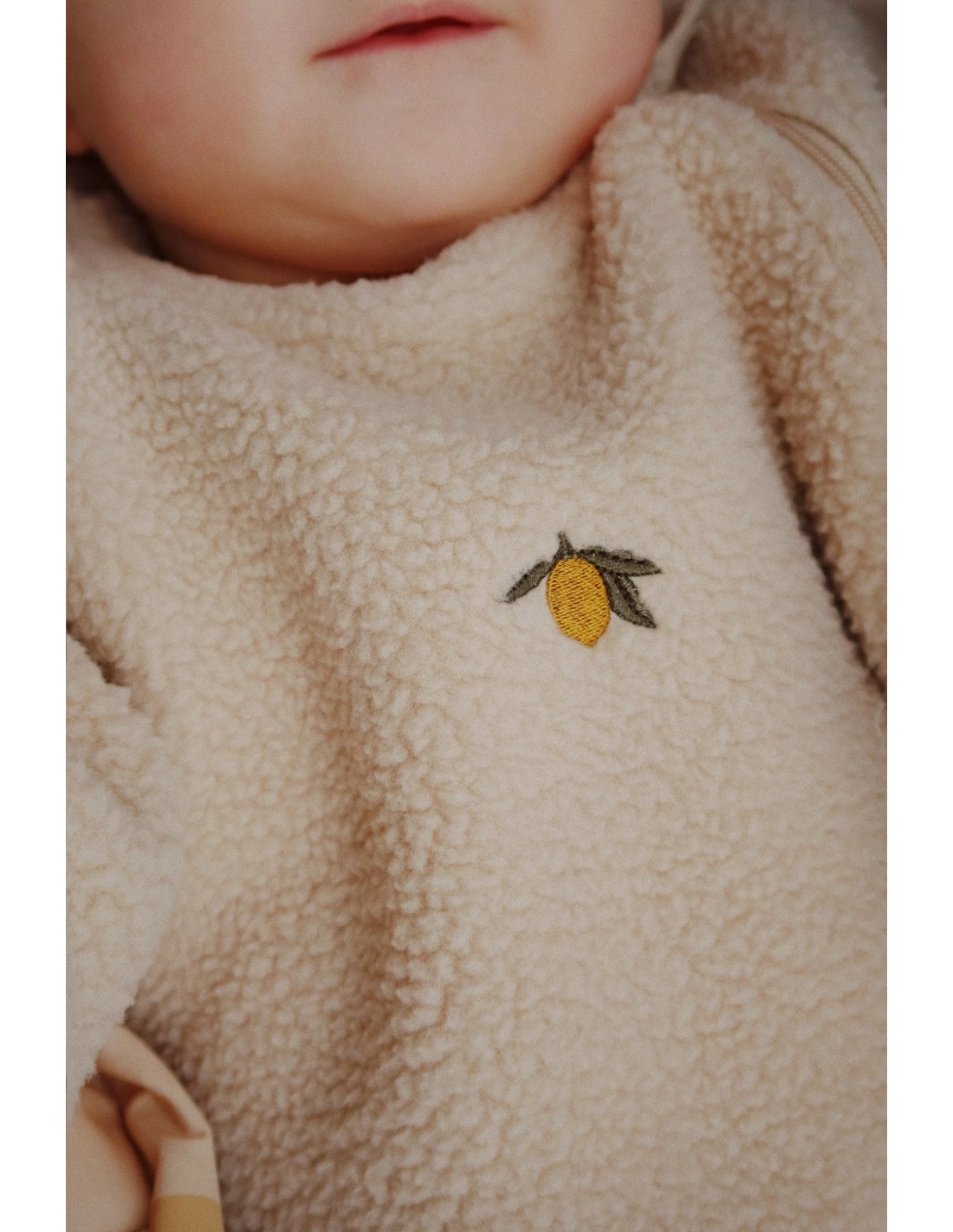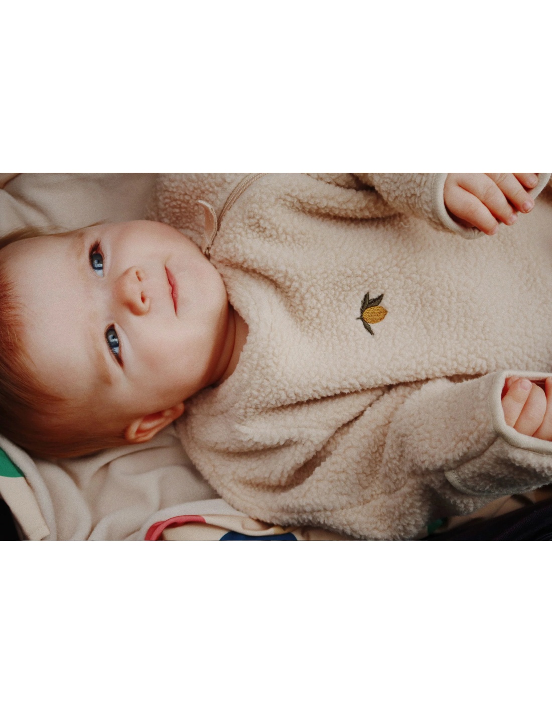 Enterito elaborado en un suave y acogedor tejido tipo fleece, pensado para brindar la máxima comodidad y abrigo a tu bebé. Su diseño incluye prácticos puños plegables en manos y pies, ideales para mantener el calor y envolver a tu pequeño en una sensación de suavidad y protección durante todo el día.