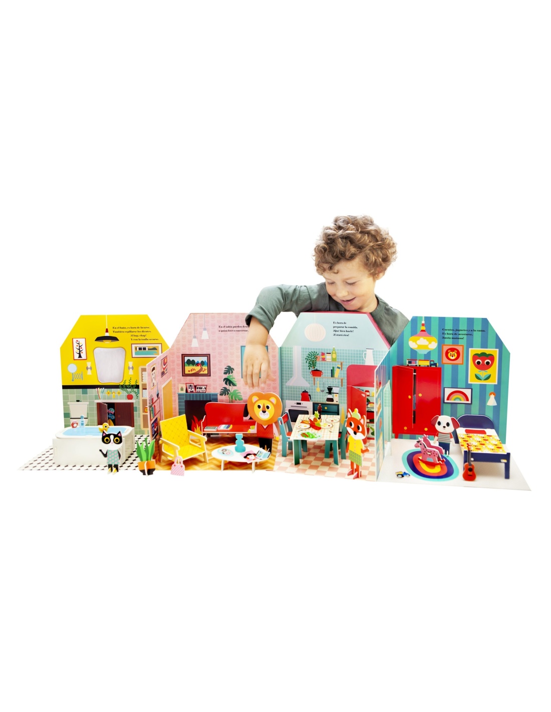 ¡Llévate esta casa de muñecas a todas partes! Esta espectacular casa de muñecas desplegable tiene cuatro habitaciones diferentes, muebles en tres dimensiones, personajes y pegatinas para decorar cada estancia. Presenta un formato perfecto para los que tienen poco espacio o para llevar de viaje, ya que las piezas se pueden guardar dentro del resistente cajón que hay en el lateral del libro.