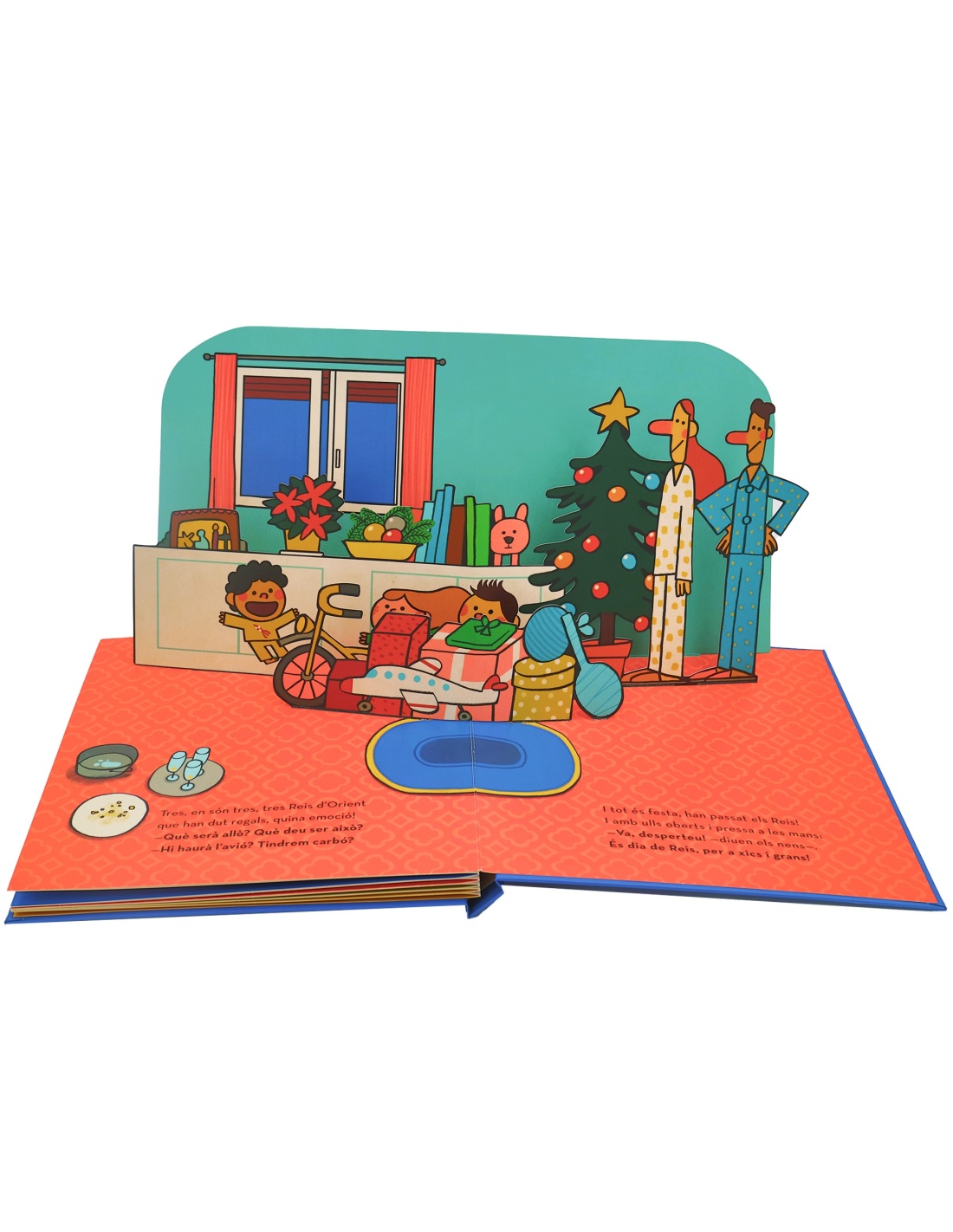 La adoración de los tres Reyes Magos y la ilusión de la noche más mágica del año en un libro pop-up. Pequeños y mayores, abrid este libro pop-up y adentraos en la noche más mágica del año, la noche de Reyes. Hace muchos, muchos años, tres reyes de Oriente llevaron regalos al niño Jesús y, desde entonces, cada año recorren medio mundo para llevar alegría e ilusión a todas las casas. ¡Shh… y a dormir pronto!