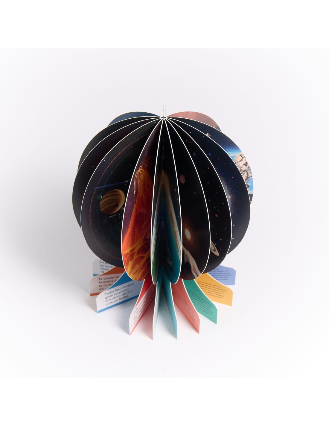 Este libro, presentado en un formato único de cartón de gran tamaño, explora nuestra galaxia a través de un globo terráqueo tridimensional que se despliega y se sostiene de pie con un cierre magnético. Cada página redonda narra un aspecto de la galaxia, combinando aprendizaje sobre el espacio con versos inspiradores. Los más pequeños disfrutarán de las rimas para leer en voz alta, mientras que otros podrán profundizar en la belleza del universo, viajando por Marte, Venus, el Sol y mundos lejanos. Un libro 3D que cautivará tanto a niños como adultos y será una pieza destacada en cualquier estantería.