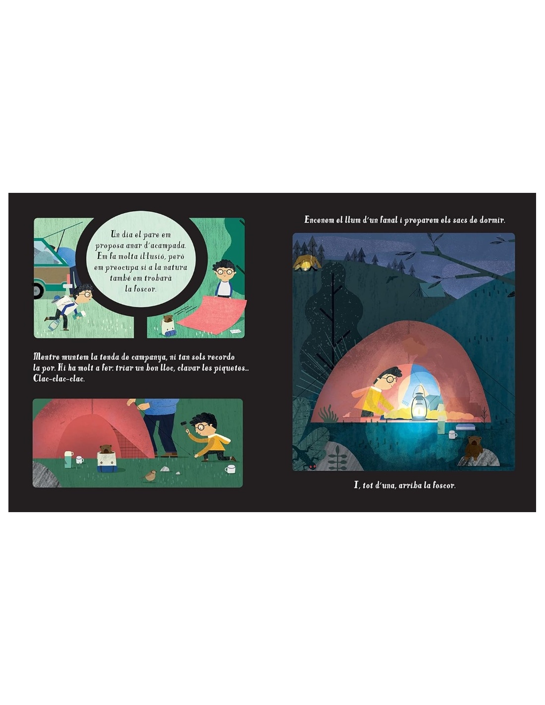 Aunque a veces tenemos miedo a la oscuridad, esta también tiene cosas buenas, como por ejemplo que nos permite ver las estrellas. Como el protagonista de este cuento, los niños aprenderán a aceptar la noche, con sus silencios y sus sombras. Un libro muy bonito, con ilustraciones que contrastan luz y oscuridad y con perforaciones en las páginas que le dan un toque misterioso.