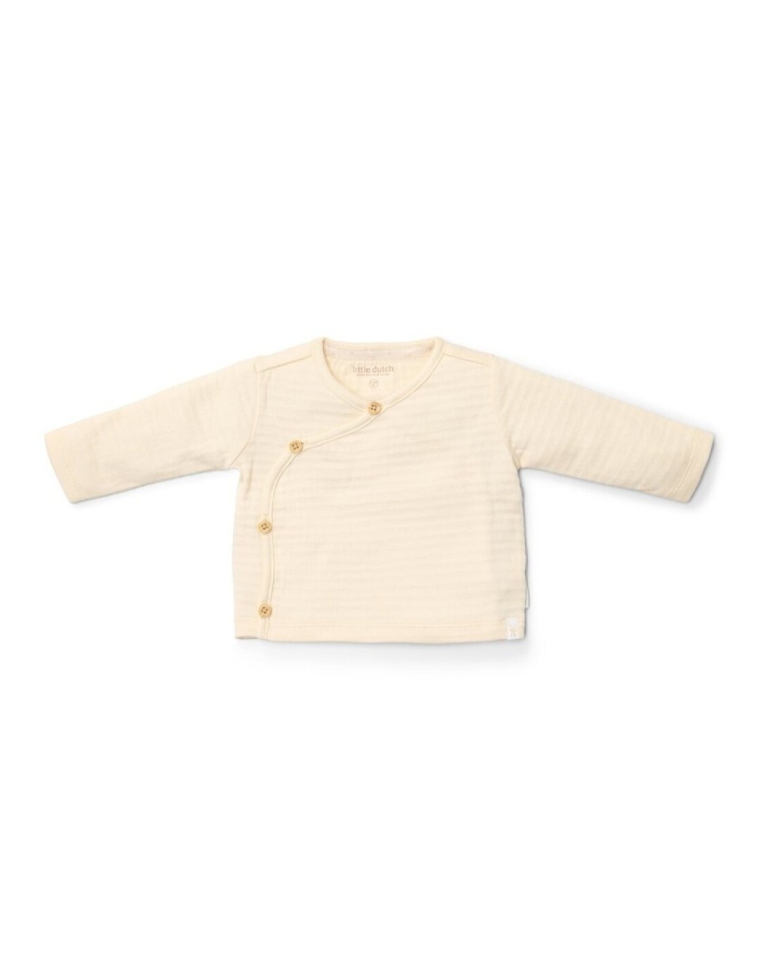 Confeccionada en un material suave de doble gasa, esta prenda destaca por sus dos finas capas de tela superpuestas que aportan un bonito efecto de textura y ligereza. El modelo superpuesto le da un aire moderno y delicado, ideal para lucir con estilo sin renunciar a la comodidad. Los botones con efecto madera añaden un detalle natural y encantador que completa el look con mucho gusto. ¡Perfecta para un outfit elegante, fresco y lleno de personalidad!
