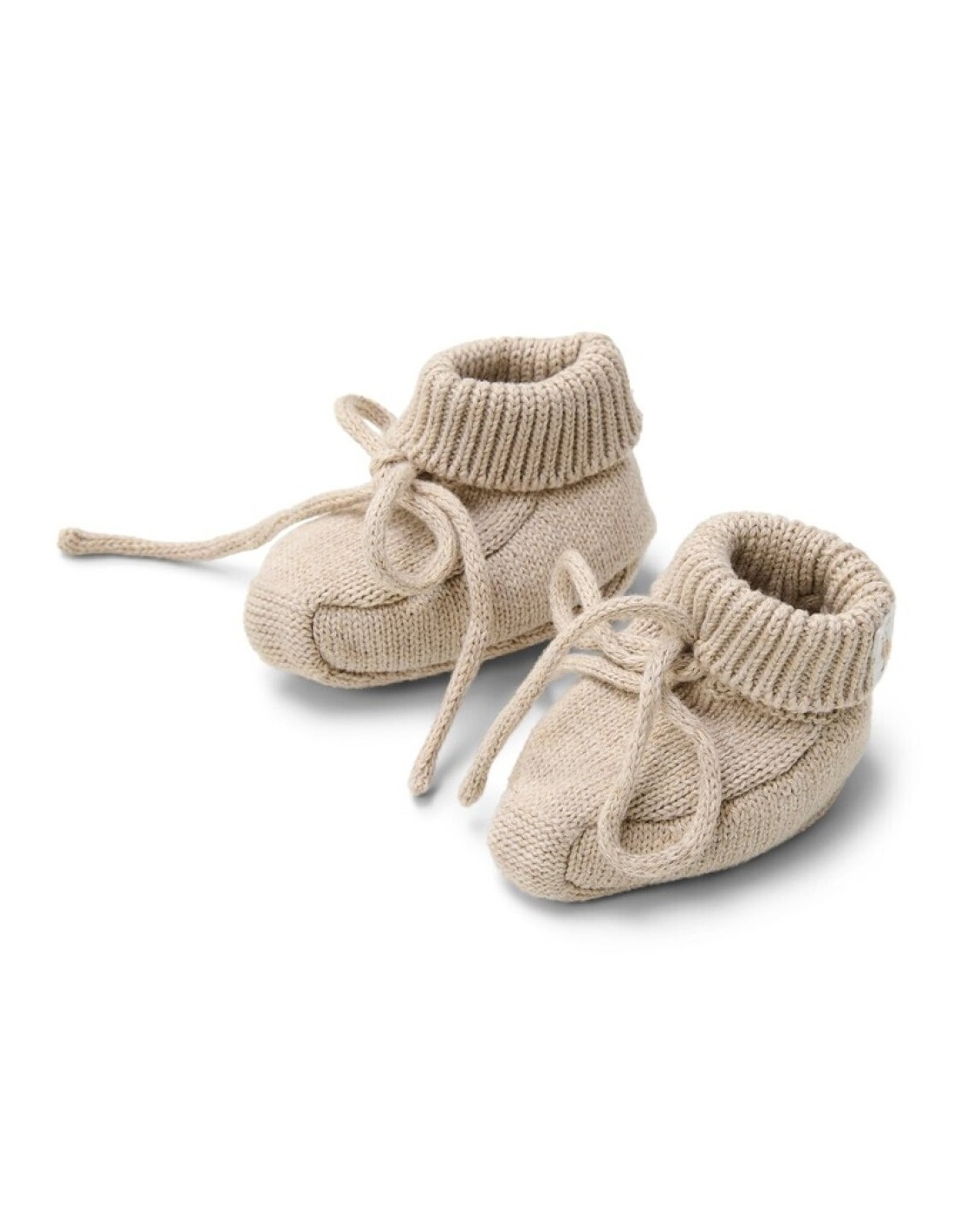 Estas suaves botitas de punto en un delicado tono beige son perfectas para esos pequeños pies que aún no han empezado a explorar el mundo. Gracias a sus cordones prácticos, se pueden ajustar fácilmente para que no se caigan cada vez que tu peque da una patadita con entusiasmo. ¡Olvídate de las botitas que desaparecen!