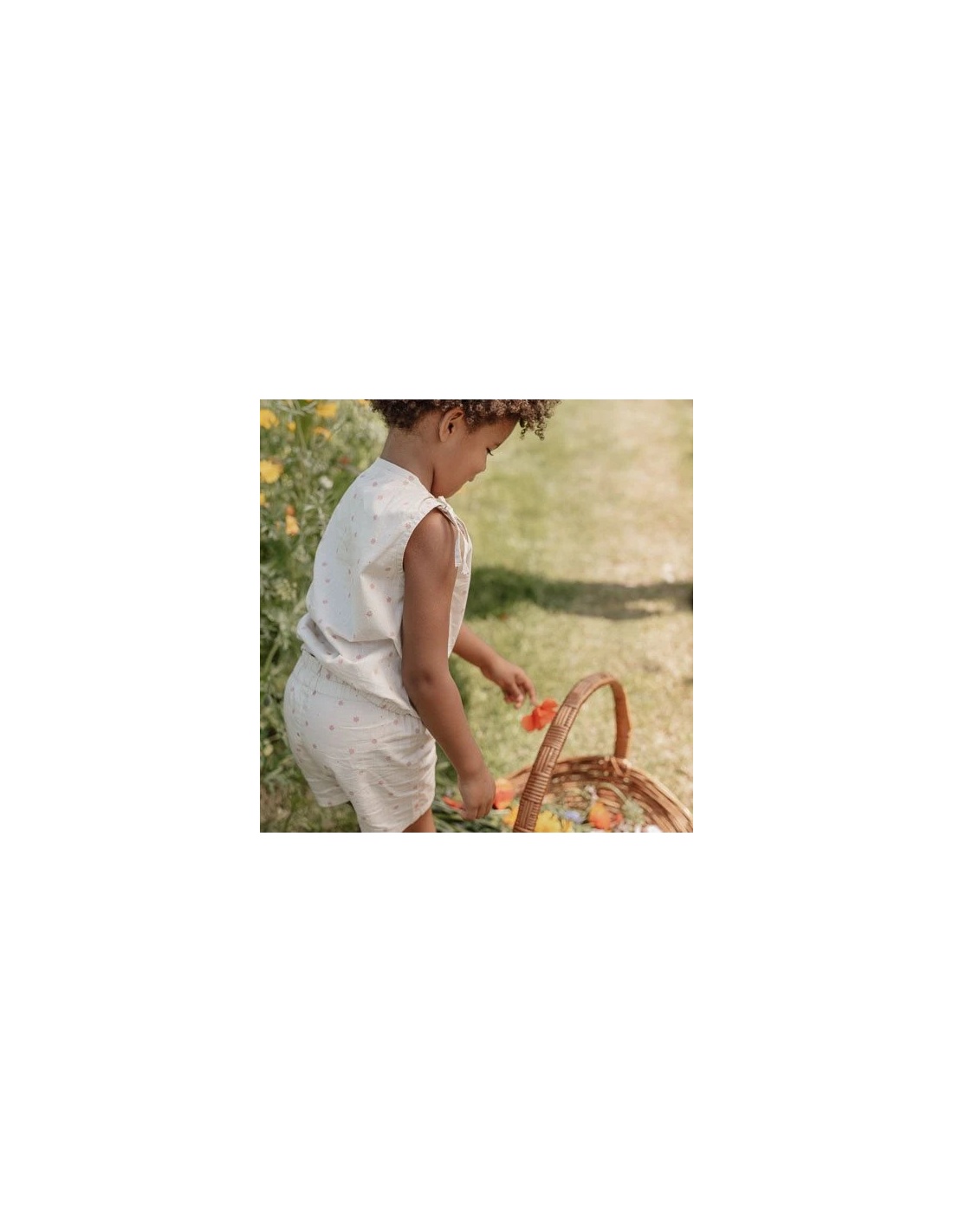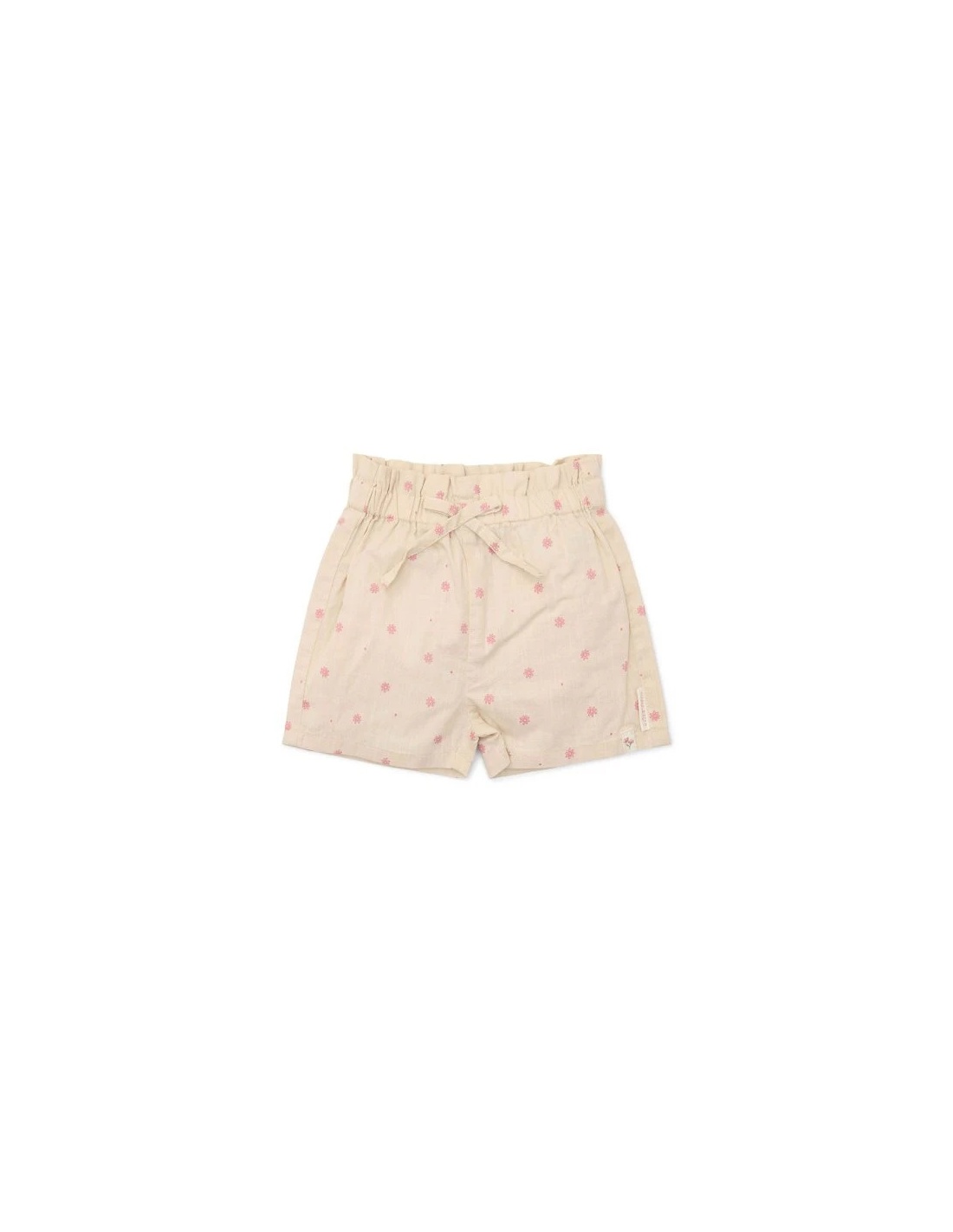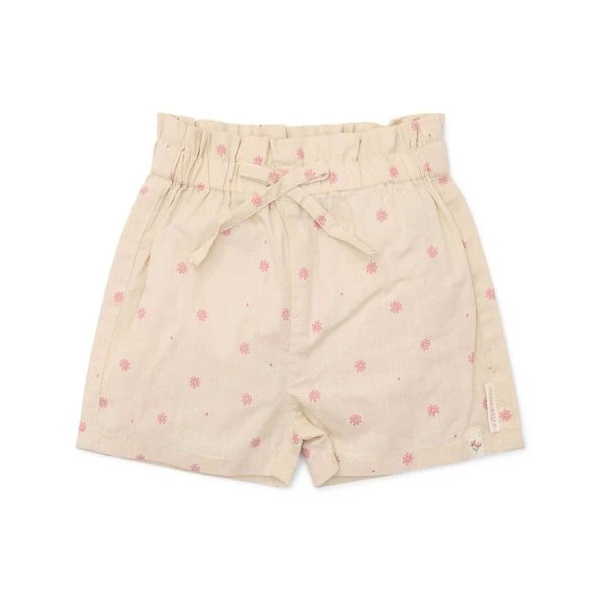 Adéntrate en un jardín lleno de flores con estos adorables pantalones cortos. El tejido en color arena, decorado con tiernas flores rosas, tiene un aire romántico. Con una cintura elástica y cordón para mayor comodidad, estos pantalones cortos son tan prácticos como encantadores. Los volantes sobre la cinturilla añaden un detalle refinado extra, lo que hace que el look sea aún más dulce.