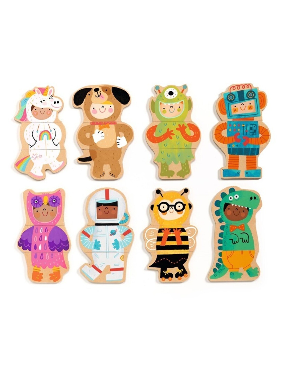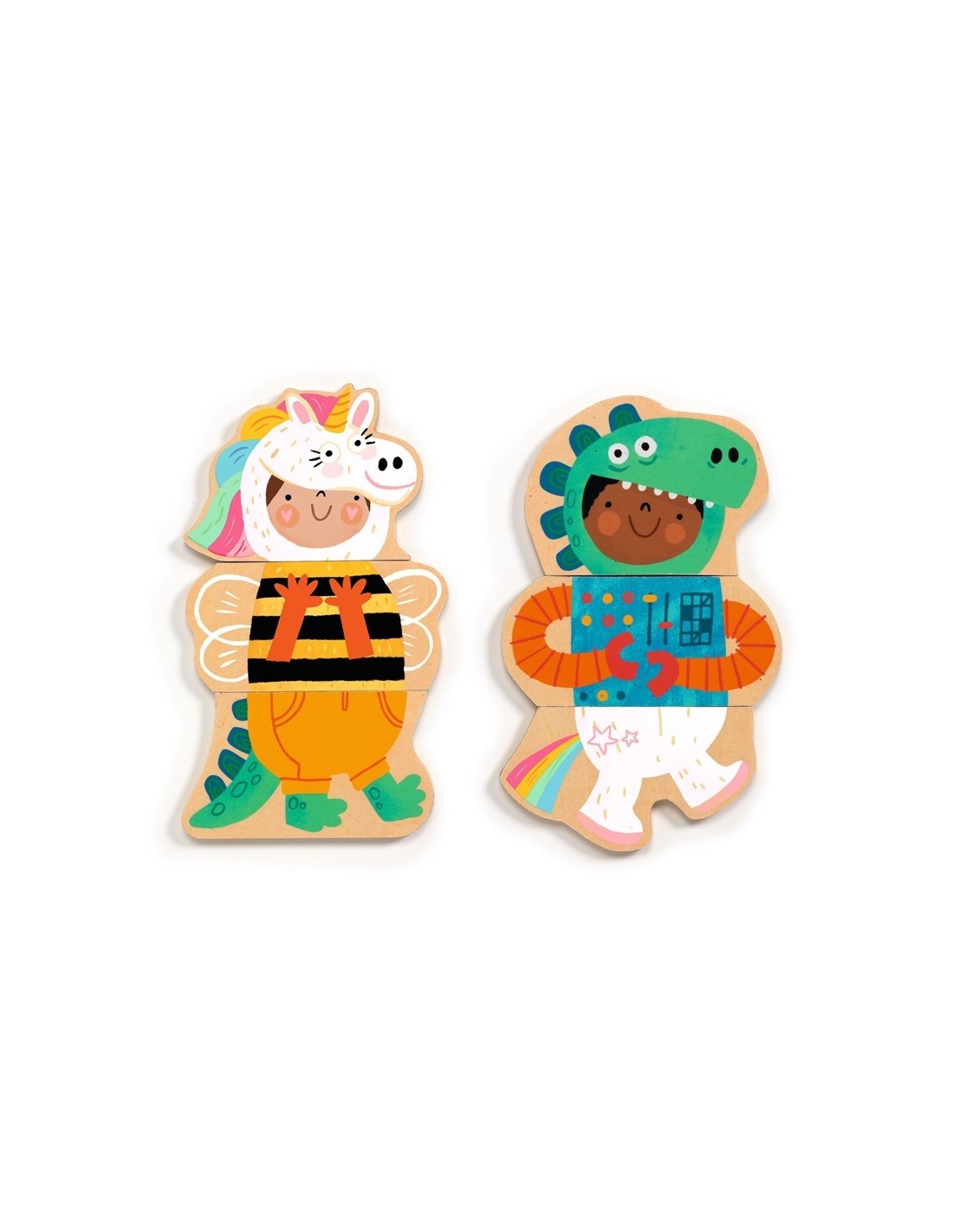 Descubre la divertida caja magnética de madera con 24 piezas para crear y combinar niños disfrazados. Con este juego, los pequeños pueden formar hasta ocho personajes diferentes uniendo cabeza, torso y piernas, o dejar volar su imaginación inventando combinaciones únicas y llenas de humor. Sus ilustraciones encantadoras cautivan a los niños, mientras desarrollan la observación y la coordinación. Presentado en una práctica caja tipo cofre, es ideal para guardar todas las piezas y llevar la diversión a cualquier lugar. Un juego creativo que invita a inventar historias y explorar sin límites.