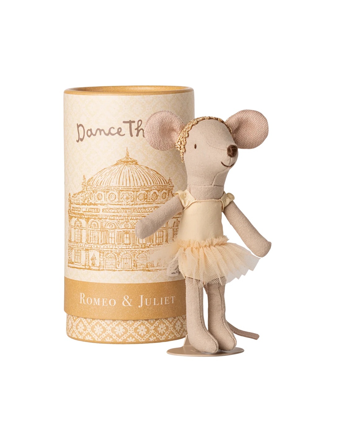 Graciosa, elegante y llena de encanto: esta pequeña ratoncita es una verdadera bailarina de ballet. Con su tutu y su dulzura natural, está lista para robarse el show. Viene presentada en un delicado tubo decorativo que incluye una base para exhibirla como se merece en cualquier rincón especial del hogar. Ideal para los amantes de la danza, la imaginación… y la ternura.