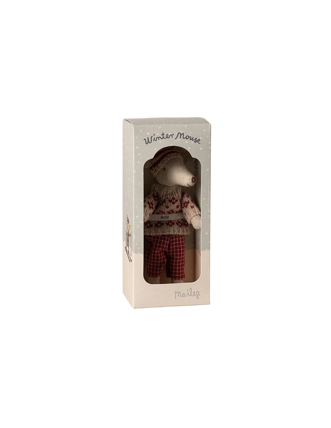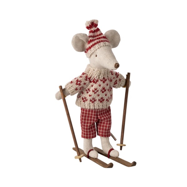La mamá ratona lista para las aventuras invernales. Incluye un look de ropa, un par de esquís y bastones, para que el juego simbólico sea muy completo.