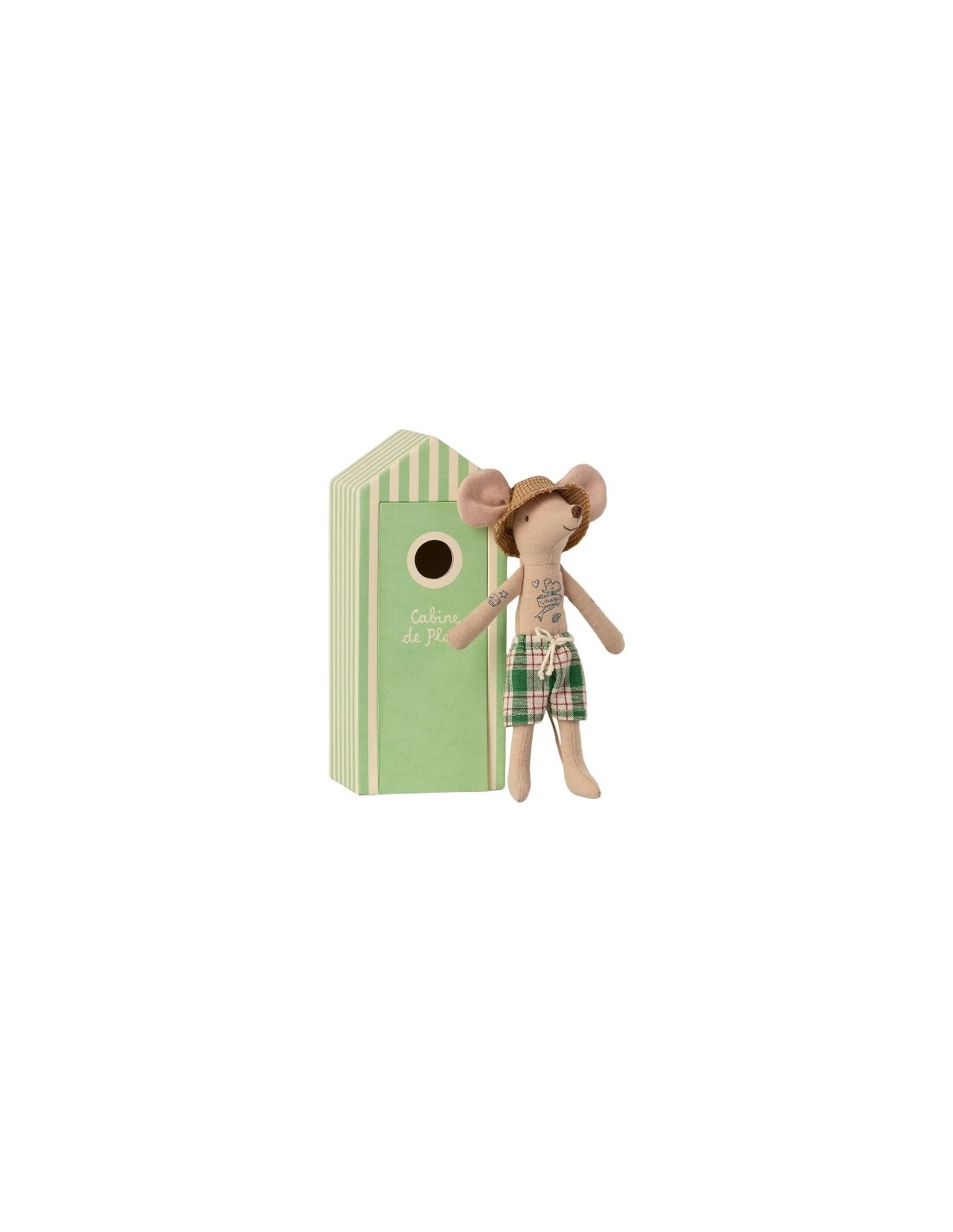 Un ratón preparado para disfrutar de horas de diversión en la playa. Cada set incluye un ratón con bañador a cuadros y un sombrero para el sol. Viene presentado en una caja con forma de caseta de playa y adornado con divertidos tatuajes. Además, sus orejas están diseñadas para que parezca que el ratón lleva orejeras.