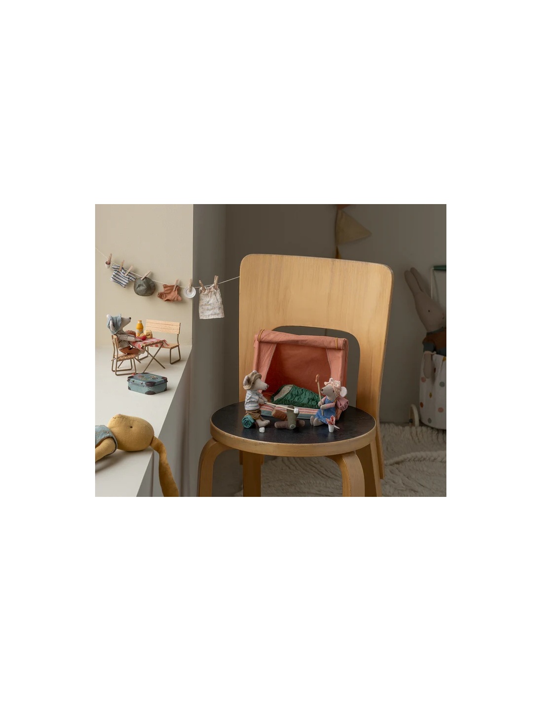 Esta ratita está bien equipada para una excursión por la naturaleza salvaje. Tiene imanes en las manos, va vestida para caminar durante días y lleva su saco de dormir para pasar las noches bajo las estrellas.