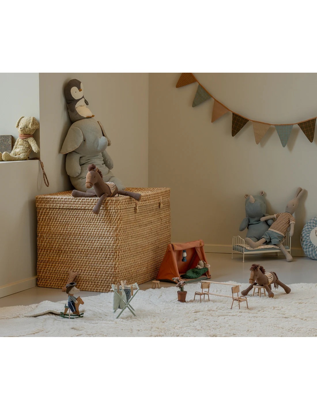 Este dulce poni marrón está confeccionado con una suave mezcla de algodón y lino, ideal para abrazar. Su crin y su cola, hechas de delicadas cuerdas de algodón, le dan un toque encantador y natural. La silla de montar, elaborada en un suave tejido de punto, asegura paseos cómodos y llenos de imaginación. ¡Un compañero perfecto para aventuras sin fin!