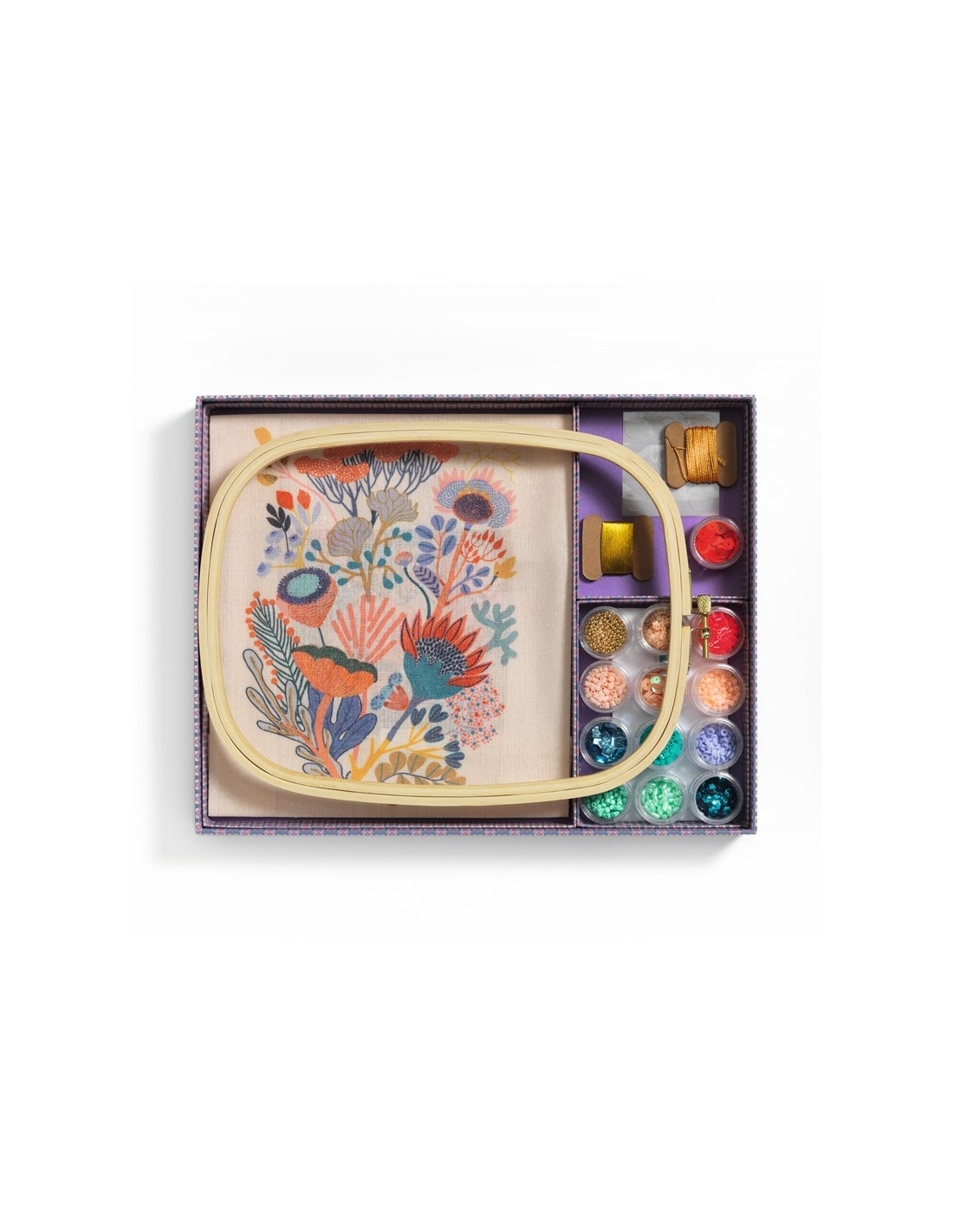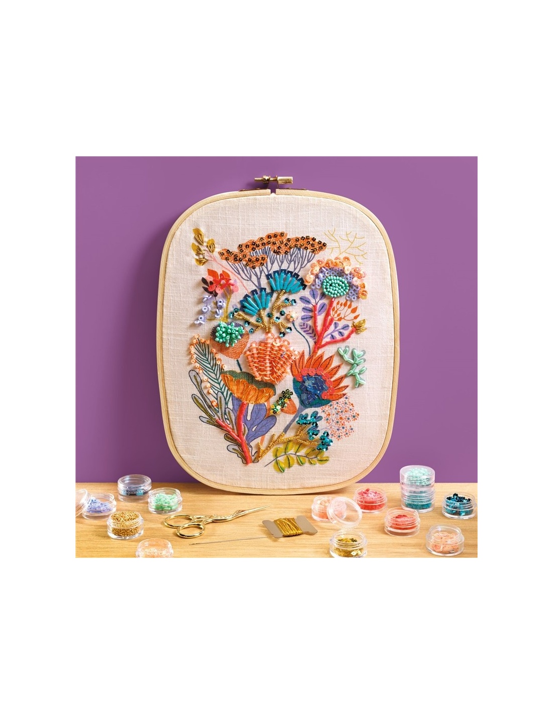 Este kit de bordado con cuentas y abalorios combina hilos de colores, perlas y lentejuelas para crear un cuadro de inspiración botánica lleno de detalles y texturas. Incluye tela con diseño preimpreso, hilos, abalorios, lentejuelas, aguja, bastidor de madera y guía paso a paso, todo presentado en una elegante caja. Perfecto para regalar o disfrutar en casa, ofrece una experiencia creativa y relajante que estimula la paciencia, la concentración y la motricidad fina, dando como resultado una pieza decorativa única y colorida lista para enmarcar o colgar.