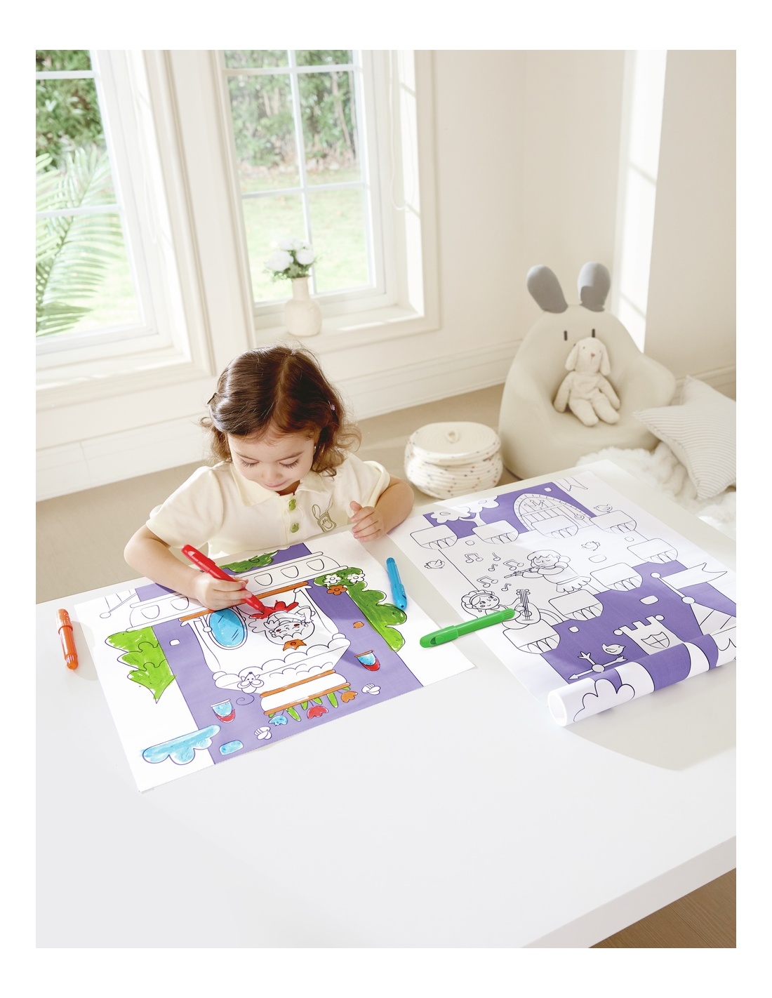 Este lienzo autoadhesivo de más de 5 metros permite a tu peque dibujar vibrantes criaturas marinas con cuatro lápices de cera suaves; sus líneas de fácil desgarro facilitan compartir y exhibir las obras de arte, mientras que el adhesivo suave permite reposicionarlas en paredes, suelos o muebles sin dañarlos, convirtiéndolo en la opción perfecta para horas de creatividad sin límites.