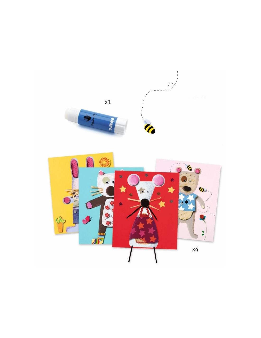 Esta caja de collage incluye todo lo necesario para decorar 4 cuadros de "animales" con una gran variedad de elementos. El niño elige un cuadro y toma el sobre correspondiente, que contiene todos los materiales para pegar. Usando la técnica clásica del collage, podrá completar cada cuadro con tiernas ilustraciones, estimulando su creatividad mientras disfruta decorando.
