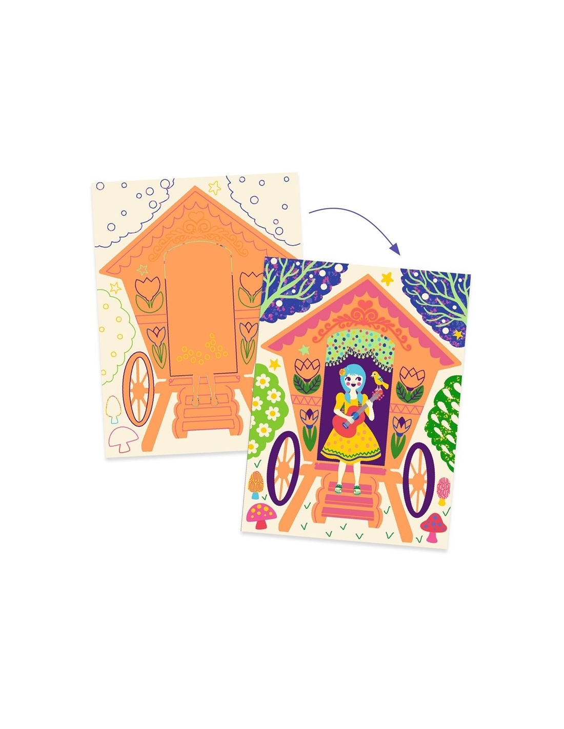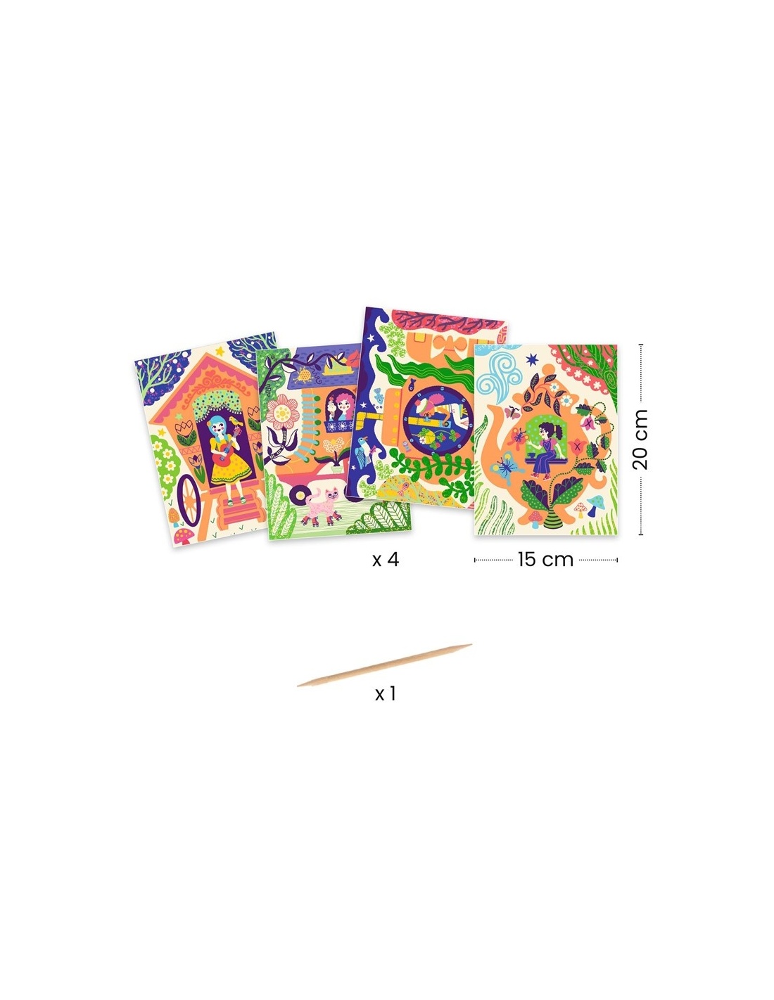 ¡Descubre el mundo mágico con estas láminas para rascar! Este kit de manualidades permite crear obras de arte sorprendentes al rascar la capa superior de las láminas y revelar colores vibrantes y diseños emocionantes. Incluye 4 láminas de diferentes diseños y cada una de ellas está cubierta por una capa especial que oculta los colores y diseños. Al rascarla con la herramienta incluida se revela una imagen vibrante y llena de detalles.