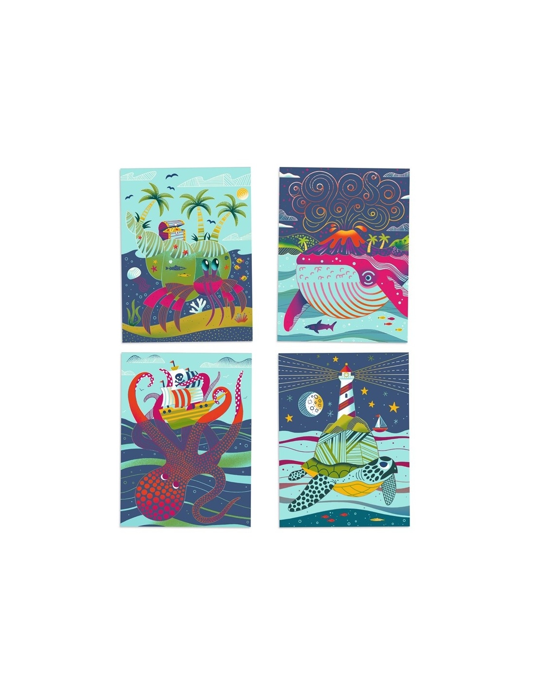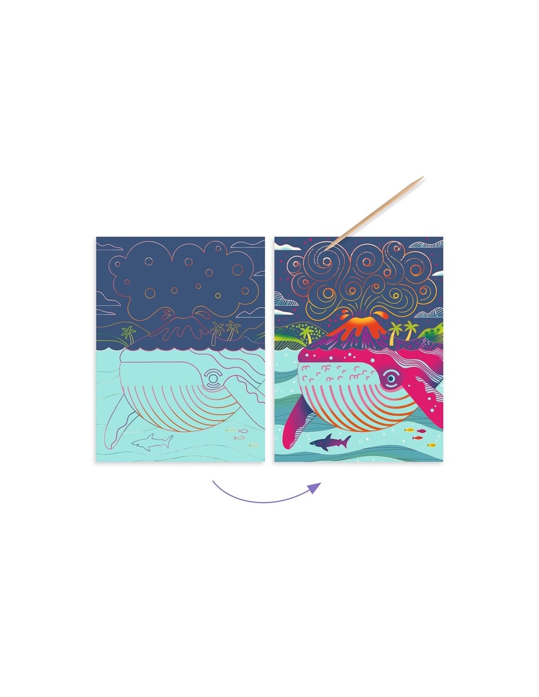 ¡Descubre el mundo mágico con estas láminas para rascar! Este kit de manualidades permite crear obras de arte sorprendentes al rascar la capa superior de las láminas y revelar colores vibrantes y diseños emocionantes. Incluye 4 láminas de diferentes diseños y cada una de ellas está cubierta por una capa especial que oculta los colores y diseños. Al rascarla con la herramienta incluida se revela una imagen vibrante y llena de detalles.