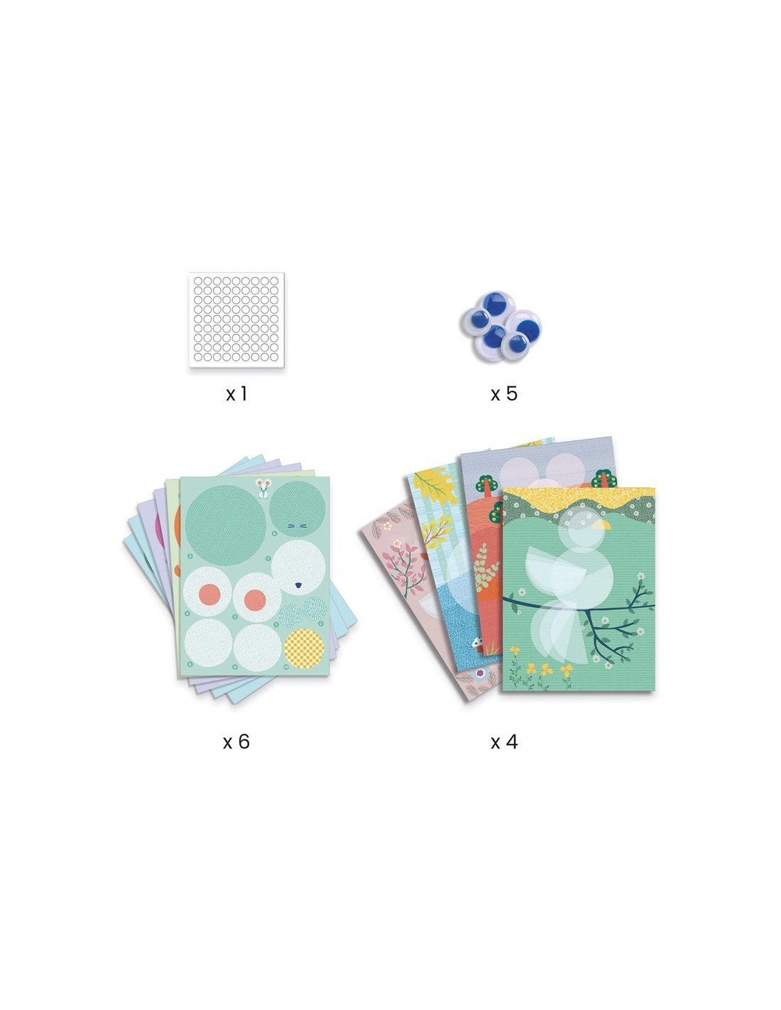 Esta actividad de doblado y collage permite al niño crear 4 cuadros en relieve. Usando círculos de papel de diferentes tamaños y colores, el niño los dobla y pega con adhesivo de doble cara. A medida que avanza, descubrirá cómo con la misma forma se pueden crear imágenes completamente diferentes, fomentando su creatividad y habilidades motrices.
