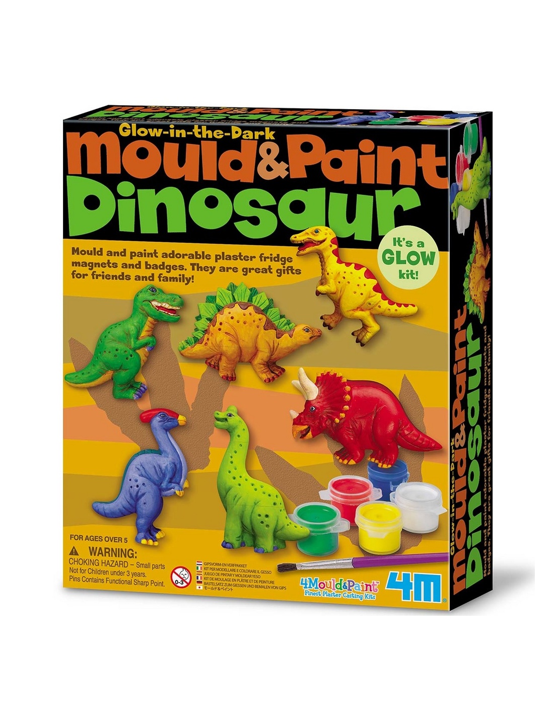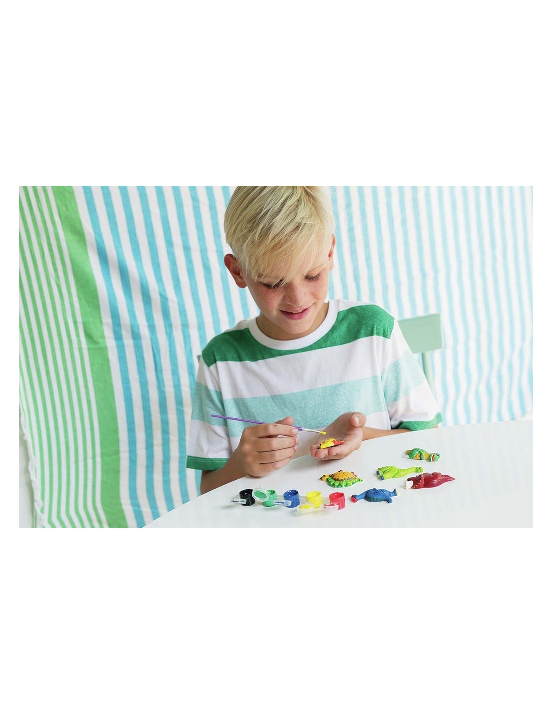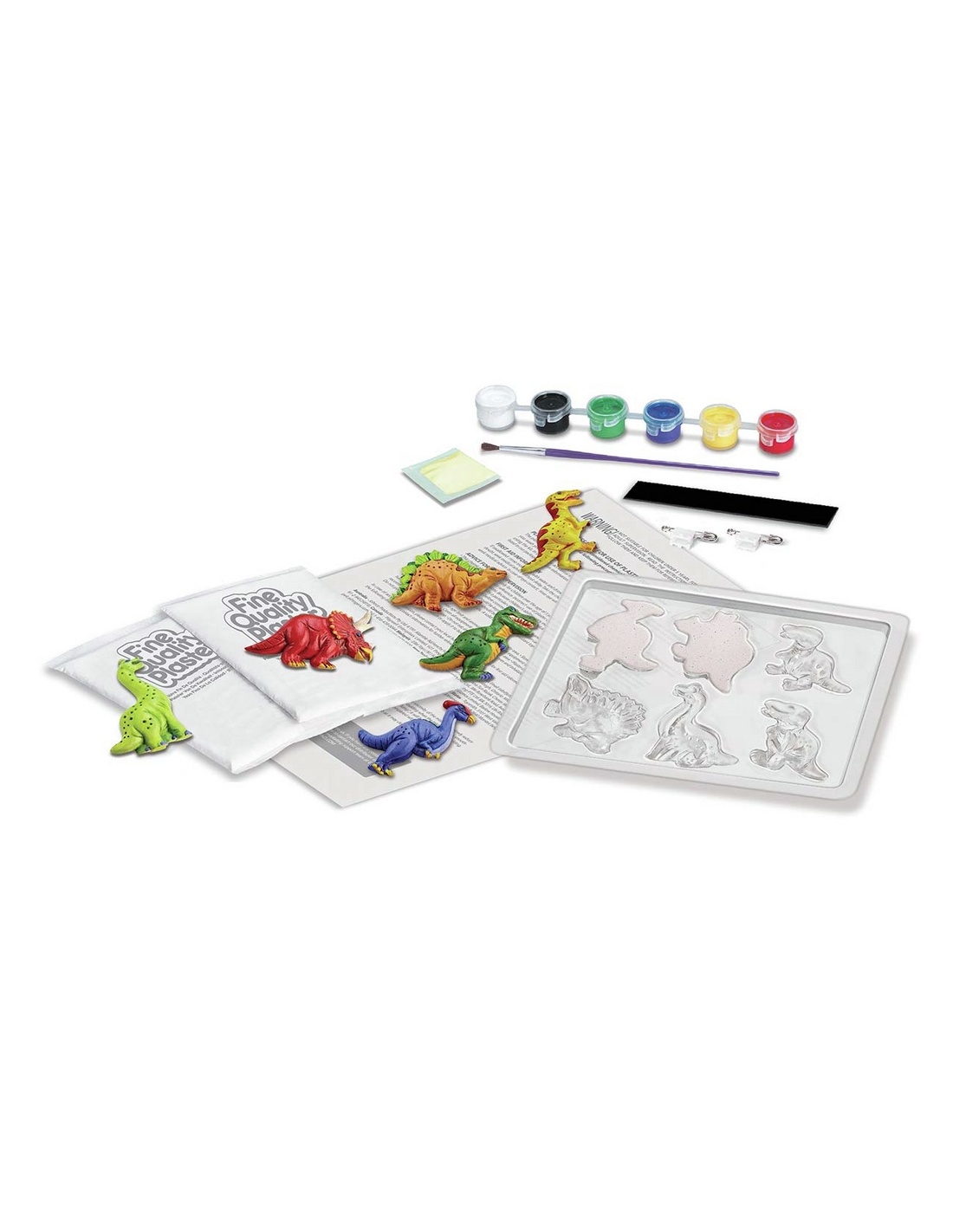 Incluye: pinturas (verde, azul, rojo, amarillo y blanco), pincel, yeso y 6 moldes.