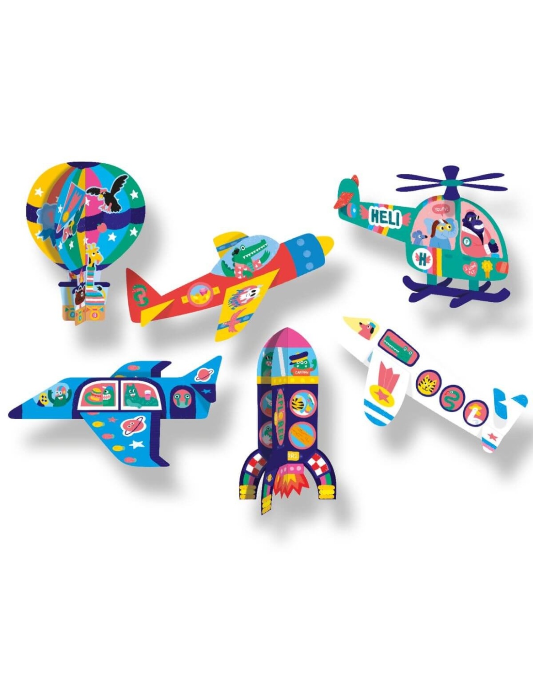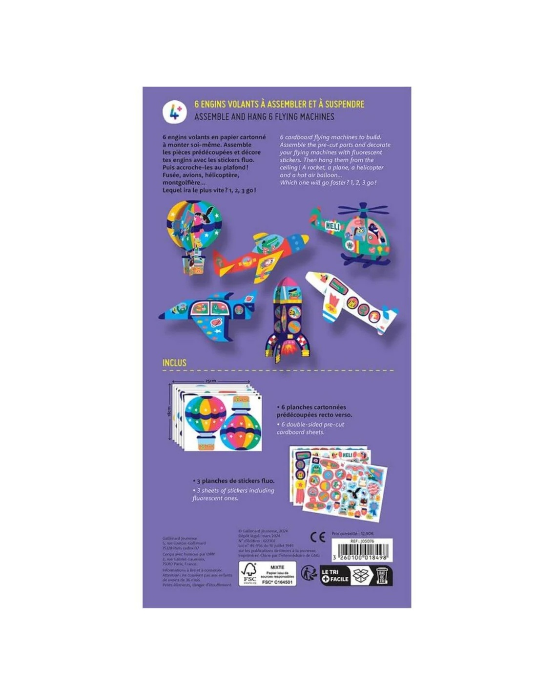 ¡Descubre la diversión creativa con esta colorida actividad de Les Ateliers OMY de Gallimard Jeunesse! Incluye todo lo necesario para montar y decorar 6 vehículos voladores de cartón —como un cohete, avión, helicóptero o globo aerostático— usando formas precortadas y pegatinas fluorescentes. Ideal para niños y niñas a partir de 4 años, según su destreza, esta propuesta pop y artística estimula la imaginación y permite colgar las creaciones del techo para jugar o decorar.