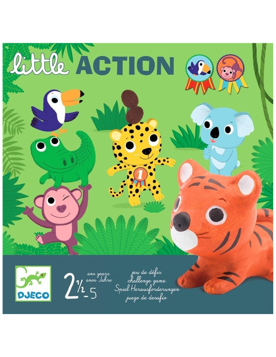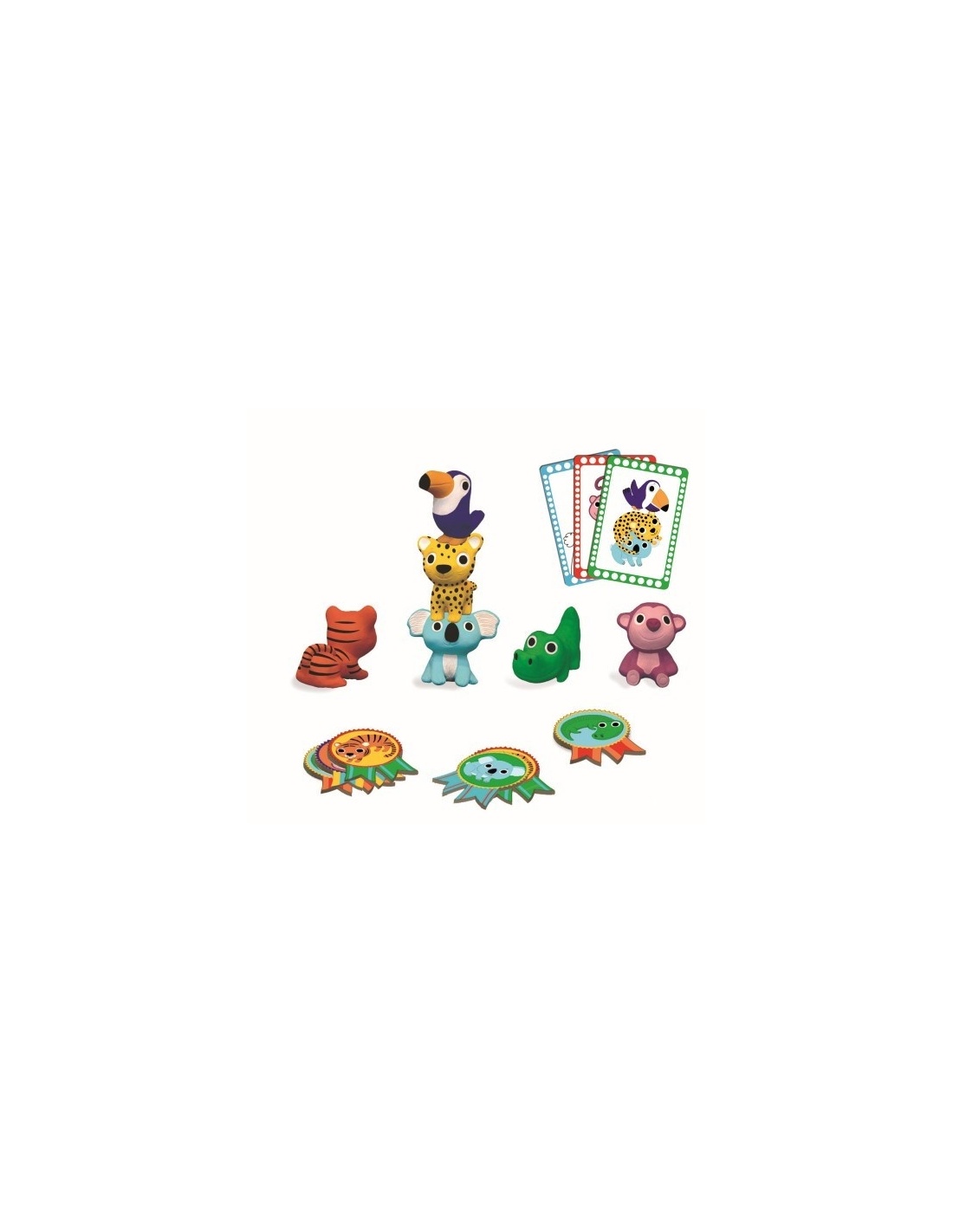 ¡Es la fiesta en la jungla y los animales tienen desafíos divertidos! En cada turno, los jugadores sacan una carta del mazo y deben superar el reto que aparece (como construir una pirámide, jugar a los bolos, lanzar, atrapar, etc.). Si lo logran, ganan una medalla, que colocan frente a ellos. Al final, el jugador que haya conseguido más medallas es el ganador.