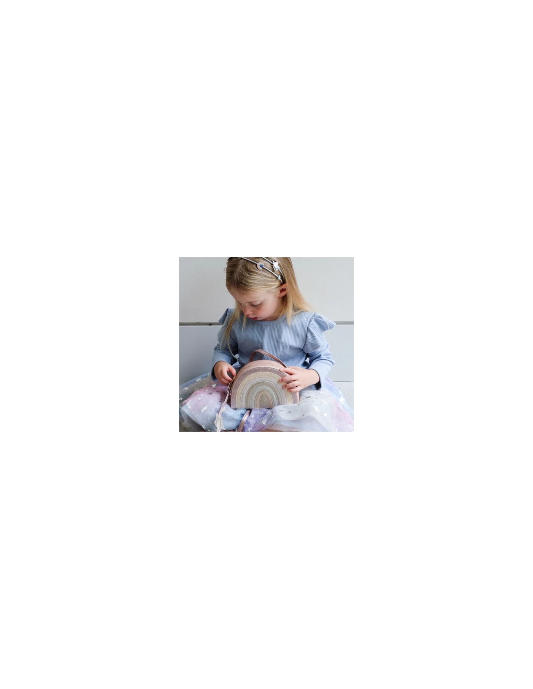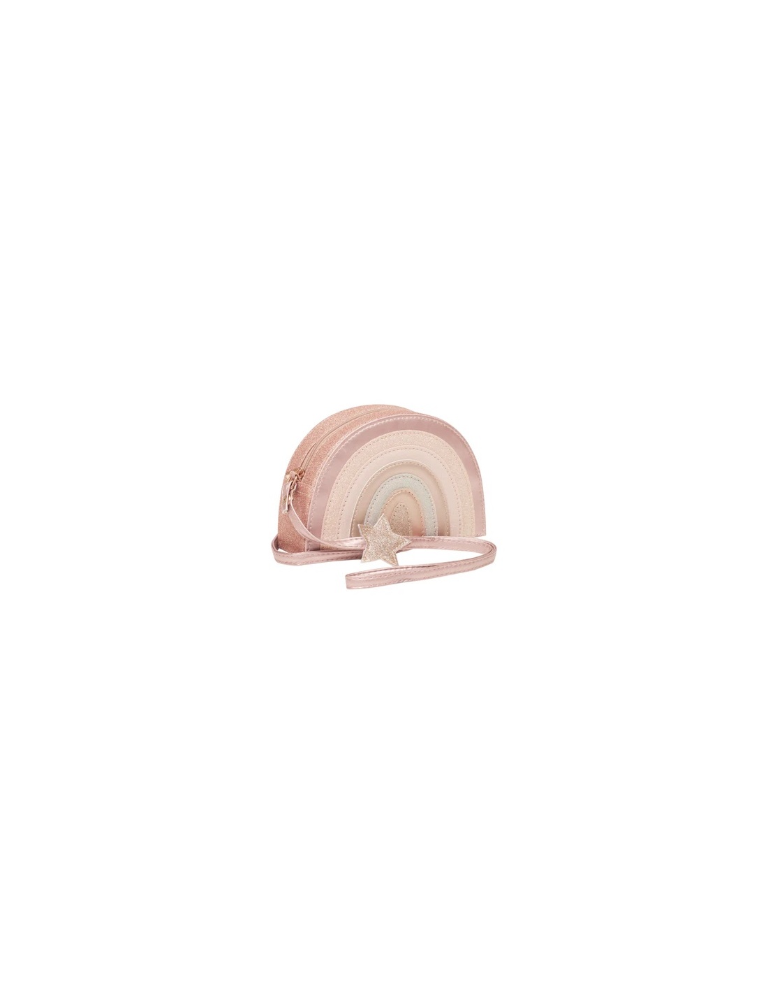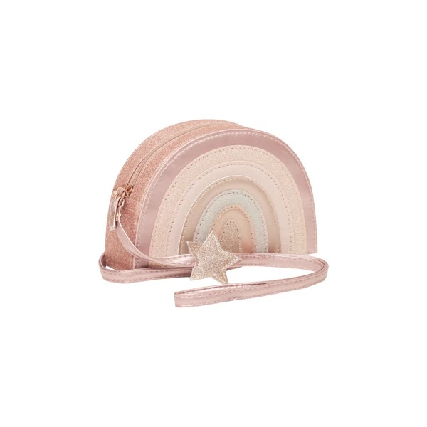¡Añade brillo y encanto con nuestra bolsa arcoíris rosa! Elaborada con una hermosa mezcla de tonos rosados, destellos de glitter y un toque de magia, es el accesorio perfecto para realzar cualquier atuendo. Confeccionada en una combinación mágica de telas brillantes y metálicas, cuenta con un práctico cierre superior y una correa de cuero sintético metalizado adornada con un encantador dije de estrella dorada con glitter. ¡Un detalle irresistible para brillar donde vayas!