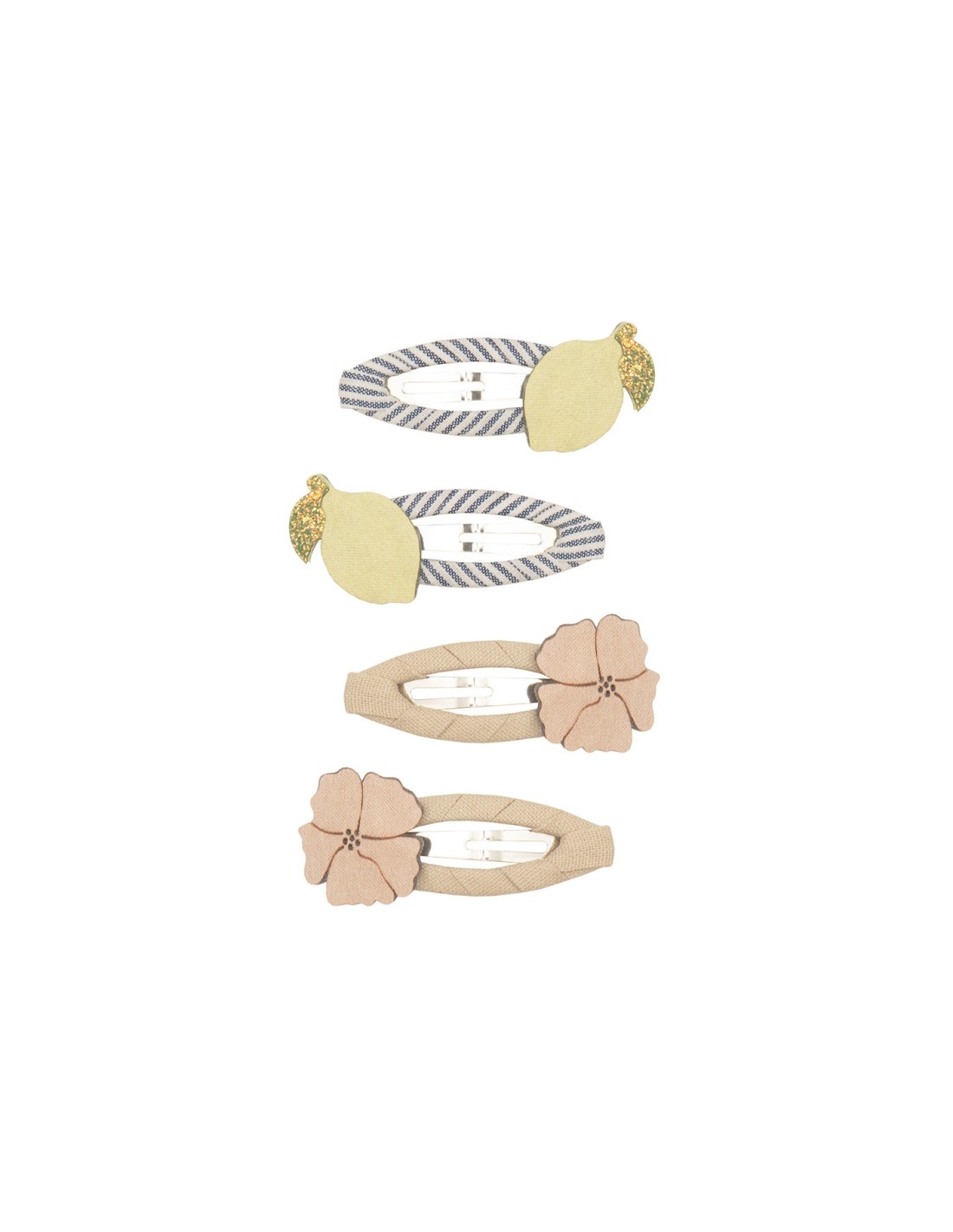 ¡Estos clips de limones definitivamente son más dulces que ácidos! Colócalos en un recogido o sujétalos de lado para darle un toque instantáneo de estilo veraniego. Limones y flores fabricados con una bonita mezcla de tejidos suaves de ante sintético y tela con purpurina.