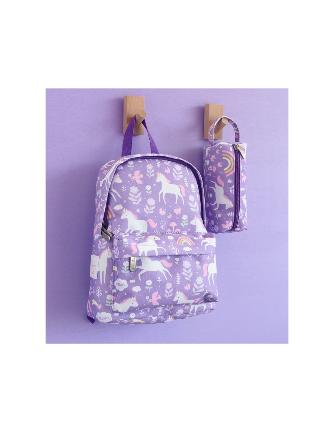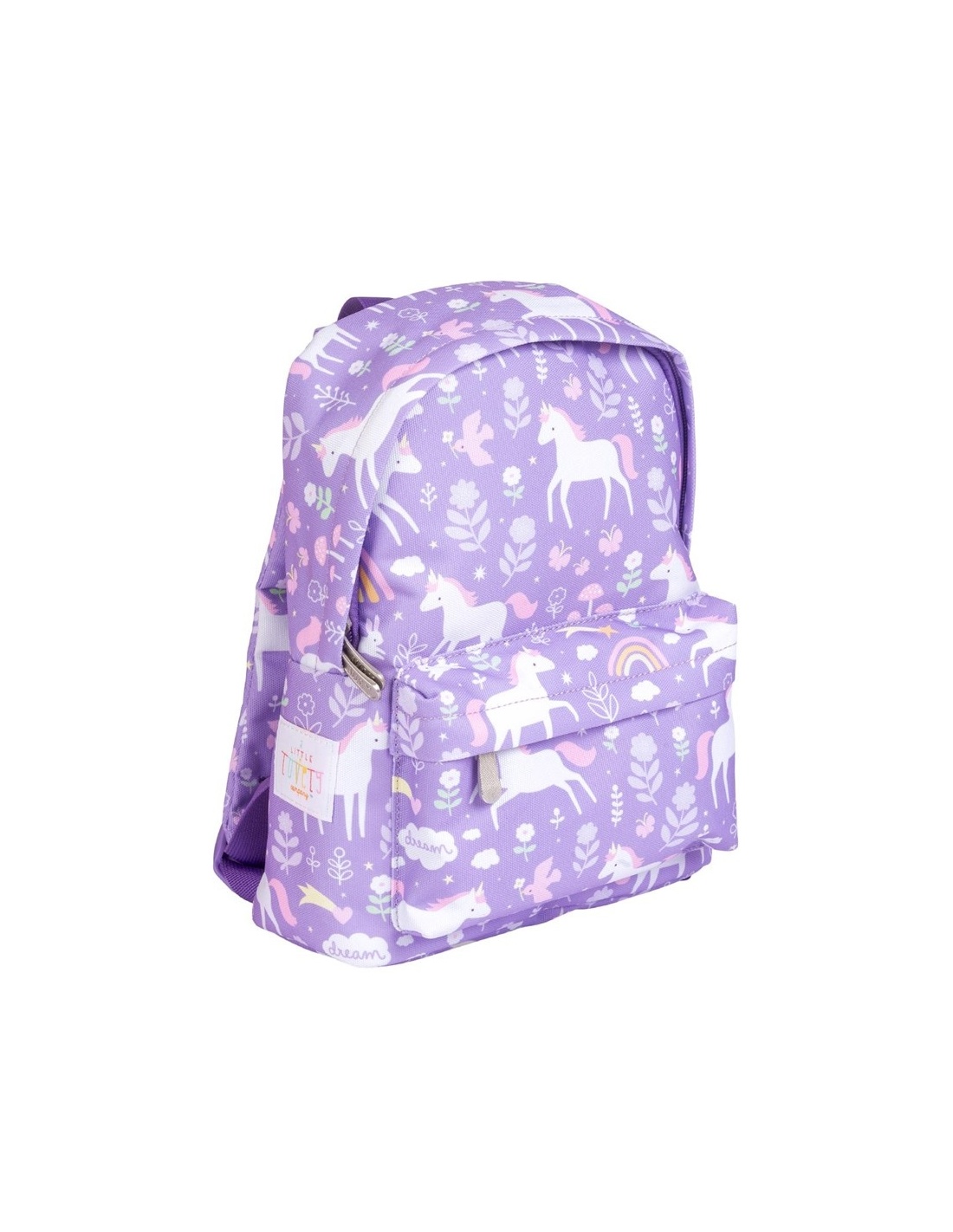Esta mochila pequeña es perfecta para los primeros días de colegio o guardería. Tiene un espacioso compartimento principal y un práctico bolsillo frontal con cremallera, ideal para guardar objetos pequeños.