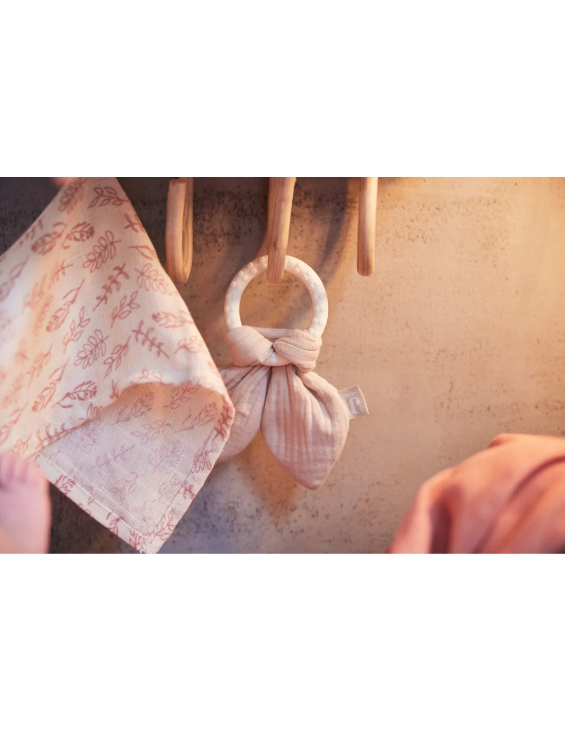 Nuestro aro de dentición de silicona con adorables orejitas de conejo es el compañero perfecto para tu pequeño durante la etapa de dentición. Proporciona alivio y, además, ¡es muy divertido para jugar! Las suaves orejas de conejo hacen un sonido crujiente que estimula la curiosidad del bebé y aumenta su diversión. Además, este aro de dentición es completamente libre de BPA, por lo que tu bebé puede chuparlo y morderlo sin preocupaciones. Dale a tu pequeño alivio y diversión con nuestro aro de dentición seguro y encantador, disponible en verde oliva, rosa silvestre y piedra lunar.