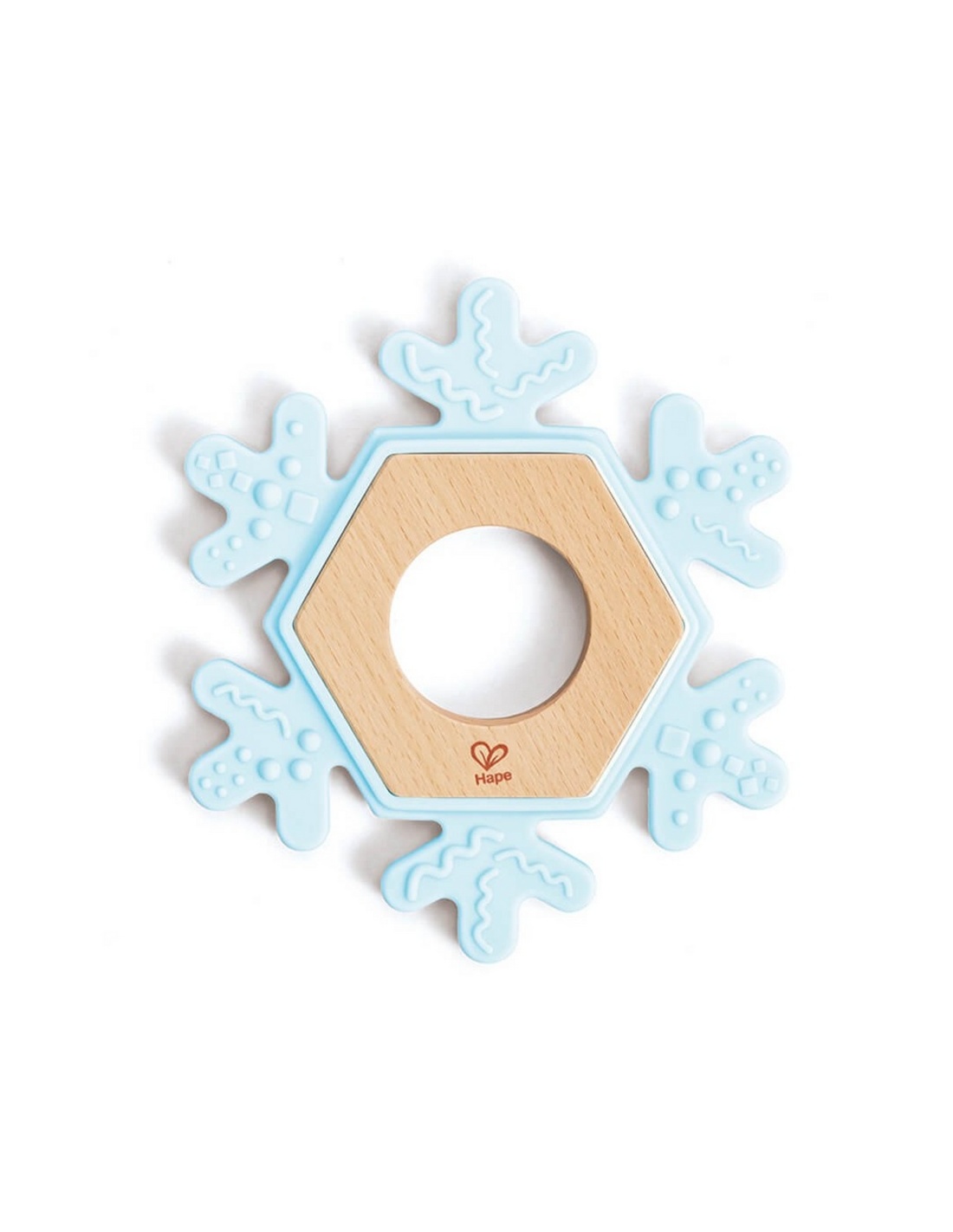 El Mordedor Nevado de Hape es un encantador juguete con forma de copo de nieve diseñado para aliviar las encías de tu bebé mientras proporciona estimulación sensorial. Fabricado con silicona libre de BPA y madera de haya, este mordedor cuenta con puntos texturizados que masajean suavemente las encías durante el proceso de dentición. Su diseño es perfecto para las pequeñas manos, permitiendo que los bebés lo agarren y sostengan con facilidad. La suave textura de la silicona es reconfortante y segura para morder, ayudando a aliviar las molestias de la dentición.