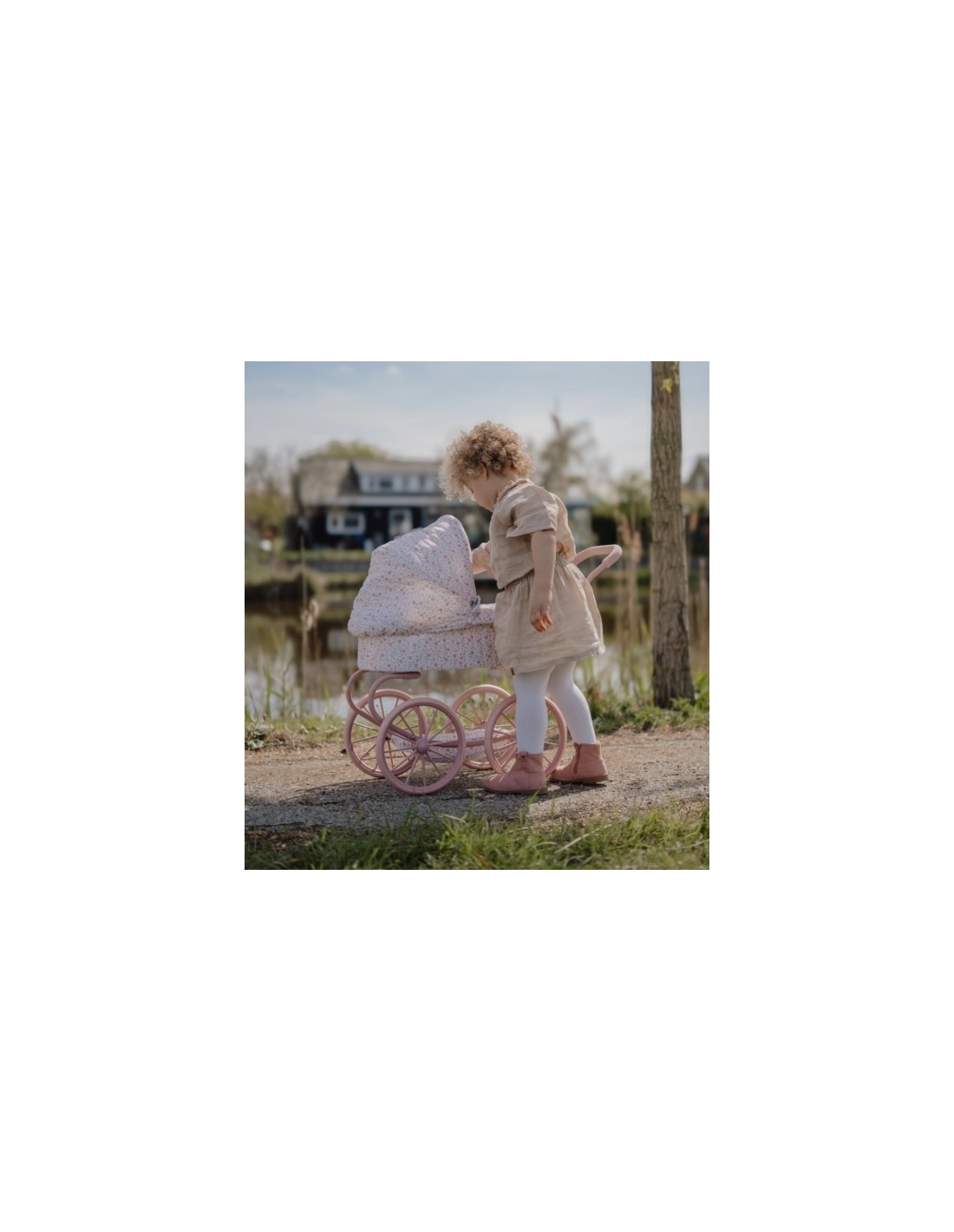 ¡Disfruta de encantadores paseos con este robusto cochecito de metal para muñecas y dale a tu muñeca el paseo de su vida! Gracias a sus cuatro ruedas grandes, este cochecito se mueve de forma suave y estable, perfecto tanto para interiores como para exteriores. En la parte inferior, encontrarás una práctica cesta para guardar los accesorios de tu muñeca siempre a mano. El armazón rosa y las suaves asas completan este elegante cochecito.