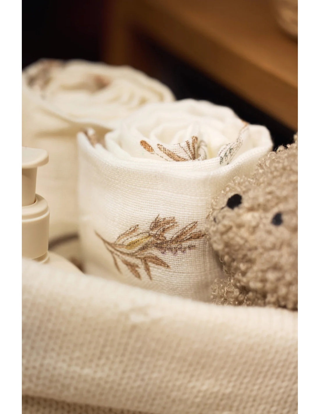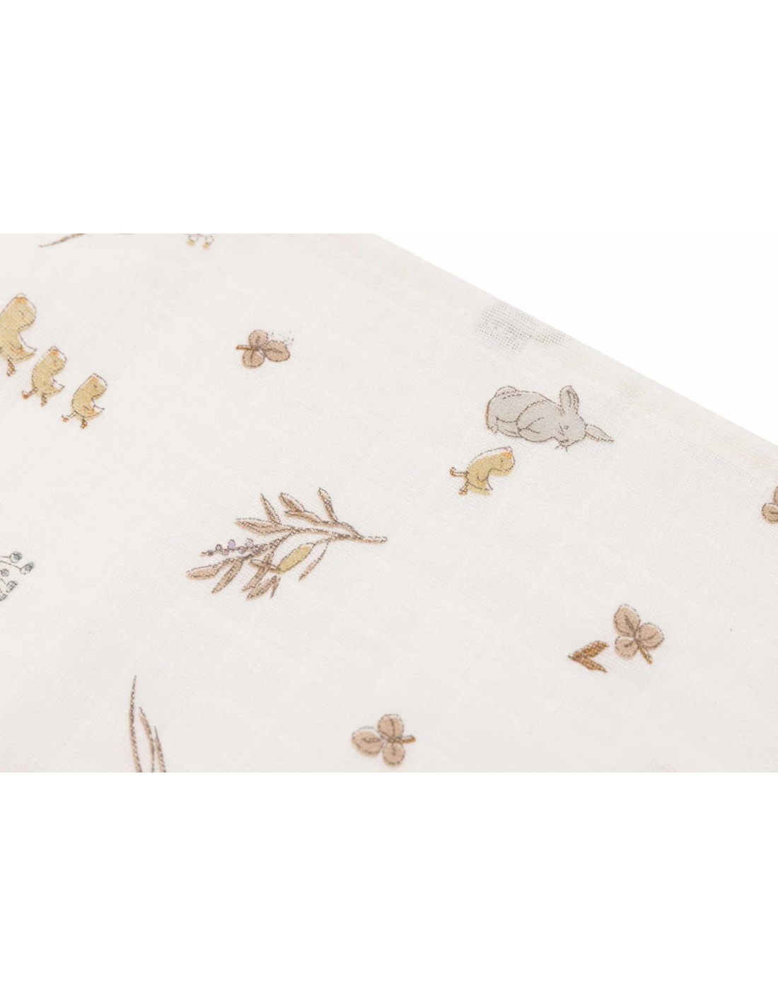 La gasa de muselina es un artículo que se usa mucho tanto para bebés como para niños pequeños. Puedes usarla como paño de lavado, para la boca, como cambiador, o para proteger el colchón de la cuna de manchas, e incluso como mantita para llevar. Las posibilidades son infinitas. Nuestro estampado Riverside es súper tierno, con patitos, conejitos y plantas junto al río.